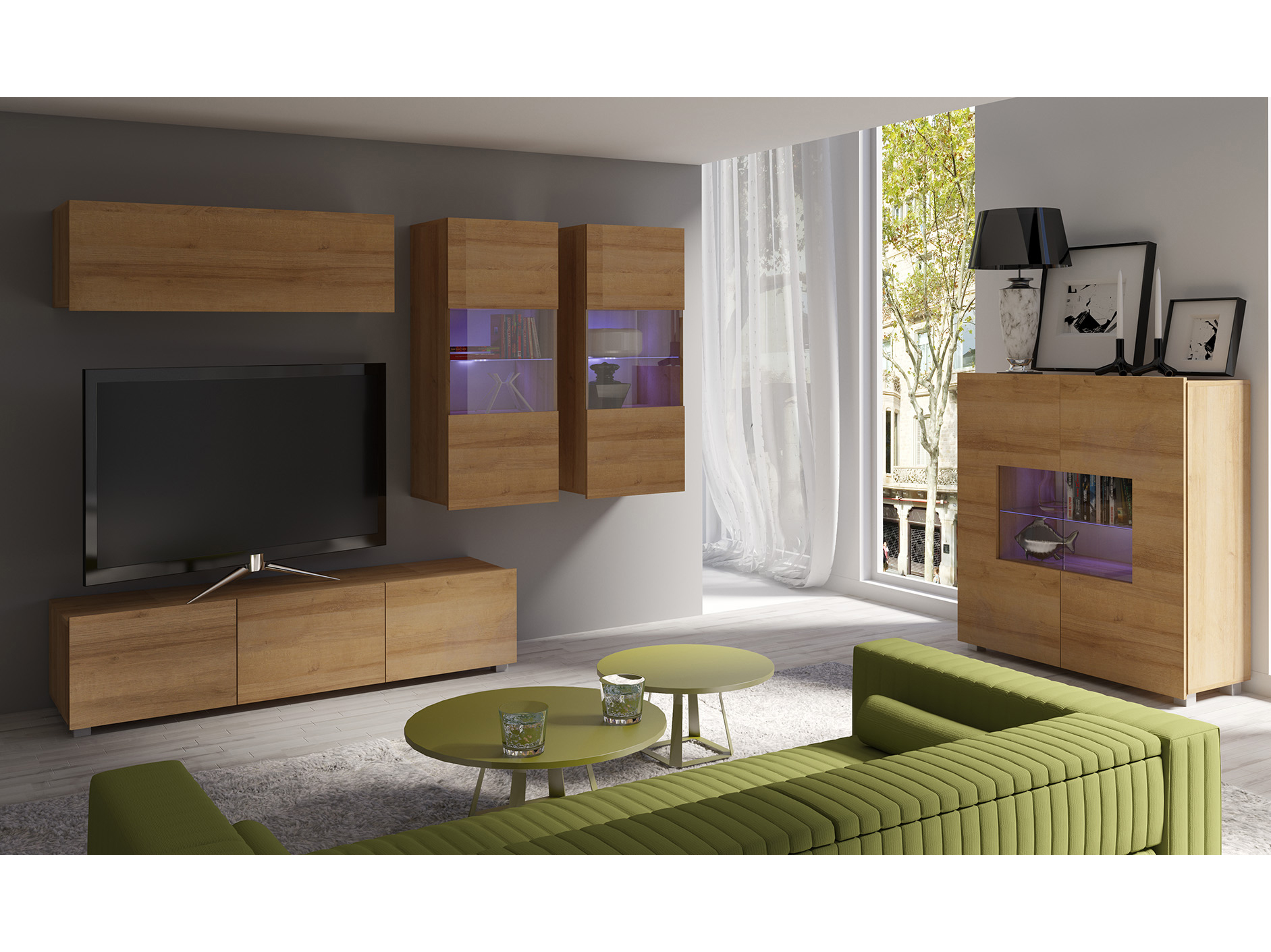 Set za dnevni boravak Calabria C6 (hrast zlatni) (bez rasvjete)