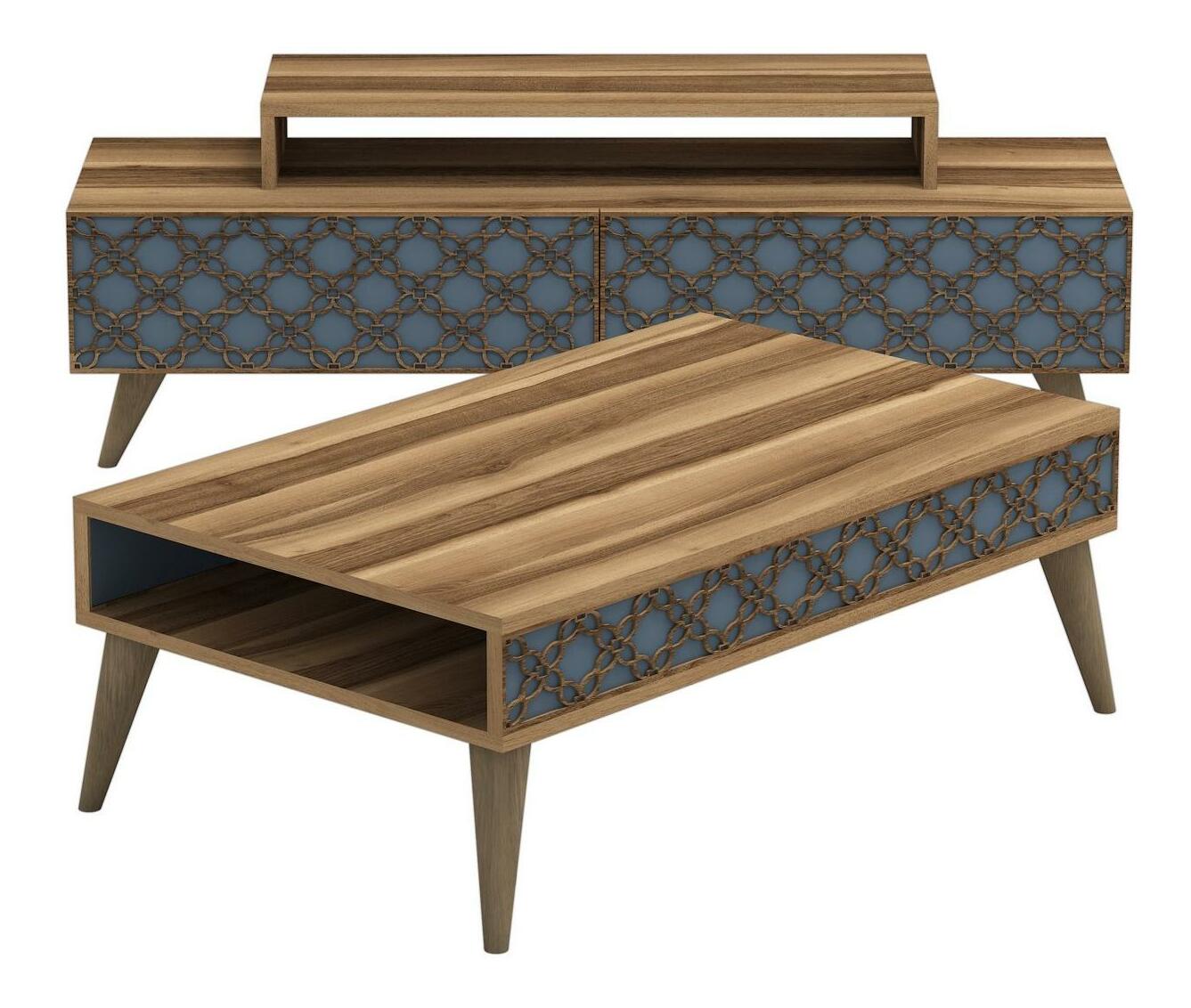 Set za dnevni boravak Clementine (orah + plavo-siva)