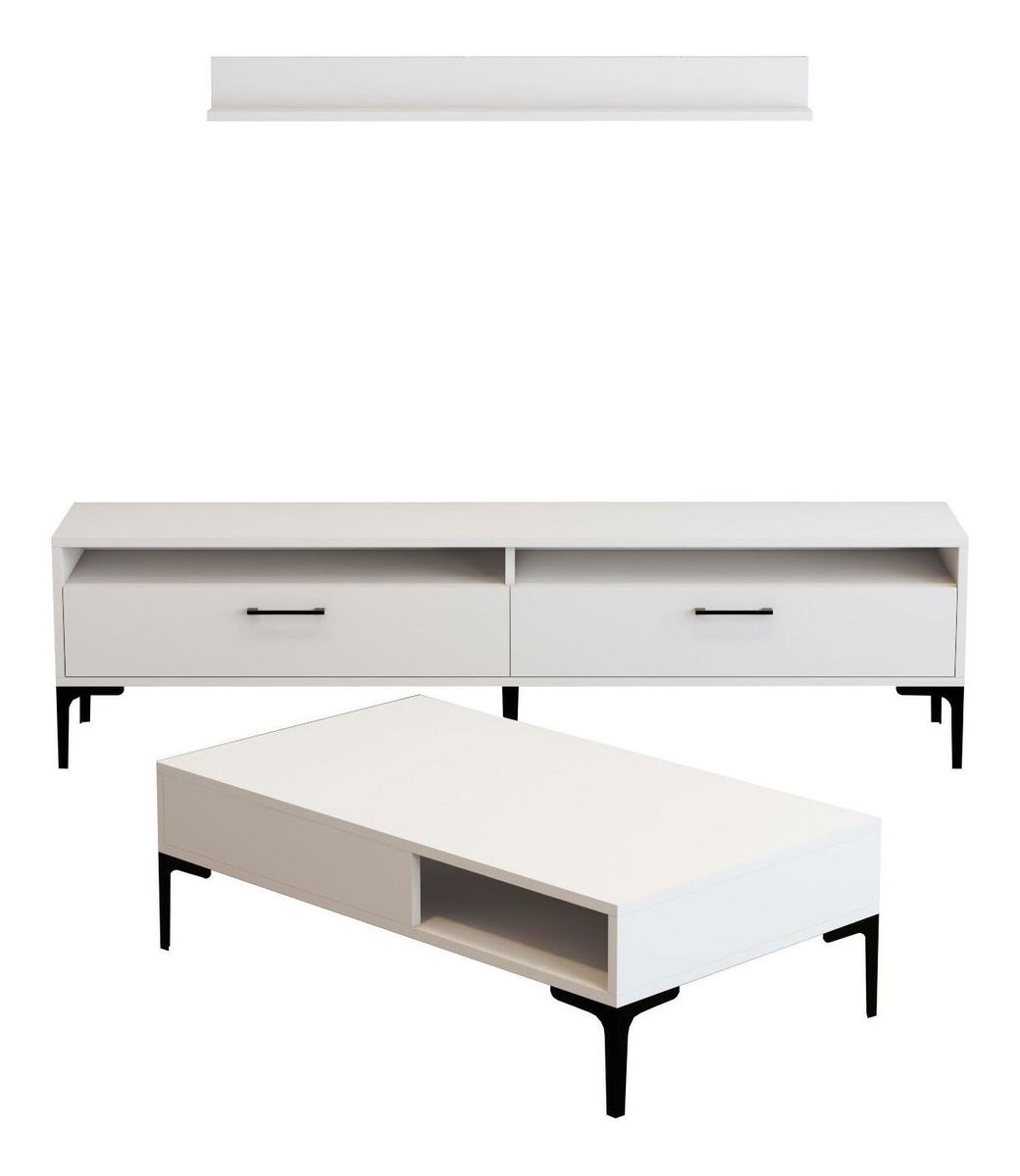 debljina: 18 mm, TV stolić: širina: 180 cm, visina: 47 cm, dubina: 35 cm, veličina zidne police: širina: 120 cm, visina: 11,8 cm, dubina: 16 cm, stolić za kavu: širina: 105 cm, visina: 32,6 cm, dubina: 60 cm, metalne noge,: 17 cm