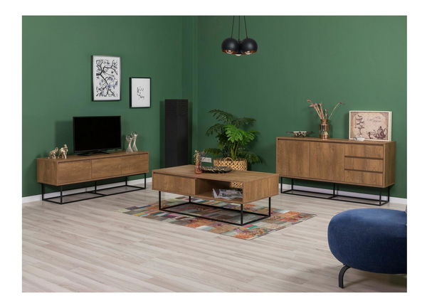 debljina: 18 mm, metalne noge, veličina TV stolića: širina: 140 cm, visina: 50 cm, dubina: 40 cm, veličina stolića za kavu: širina: 120 cm, visina: 43 cm, dubina: 60 cm, veličina konzole: širina: 140 cm, visina: 72 cm, dubina: 36 cm