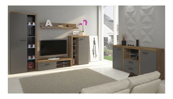 Set za dnevni boravak Rokara (s komodom) (hrast lefkas + grafit) (bez rasvjete)