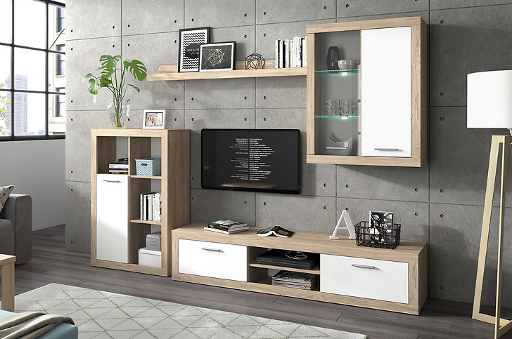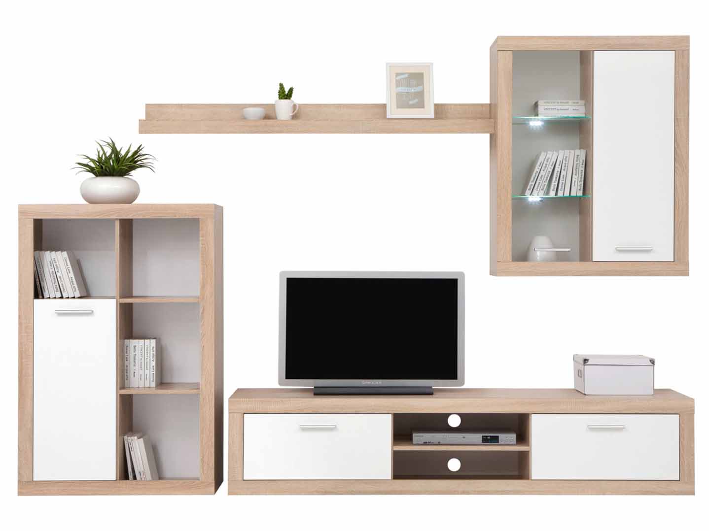 Set za dnevni boravak Seema (bijela + hrast sonoma) (bez rasvjete)