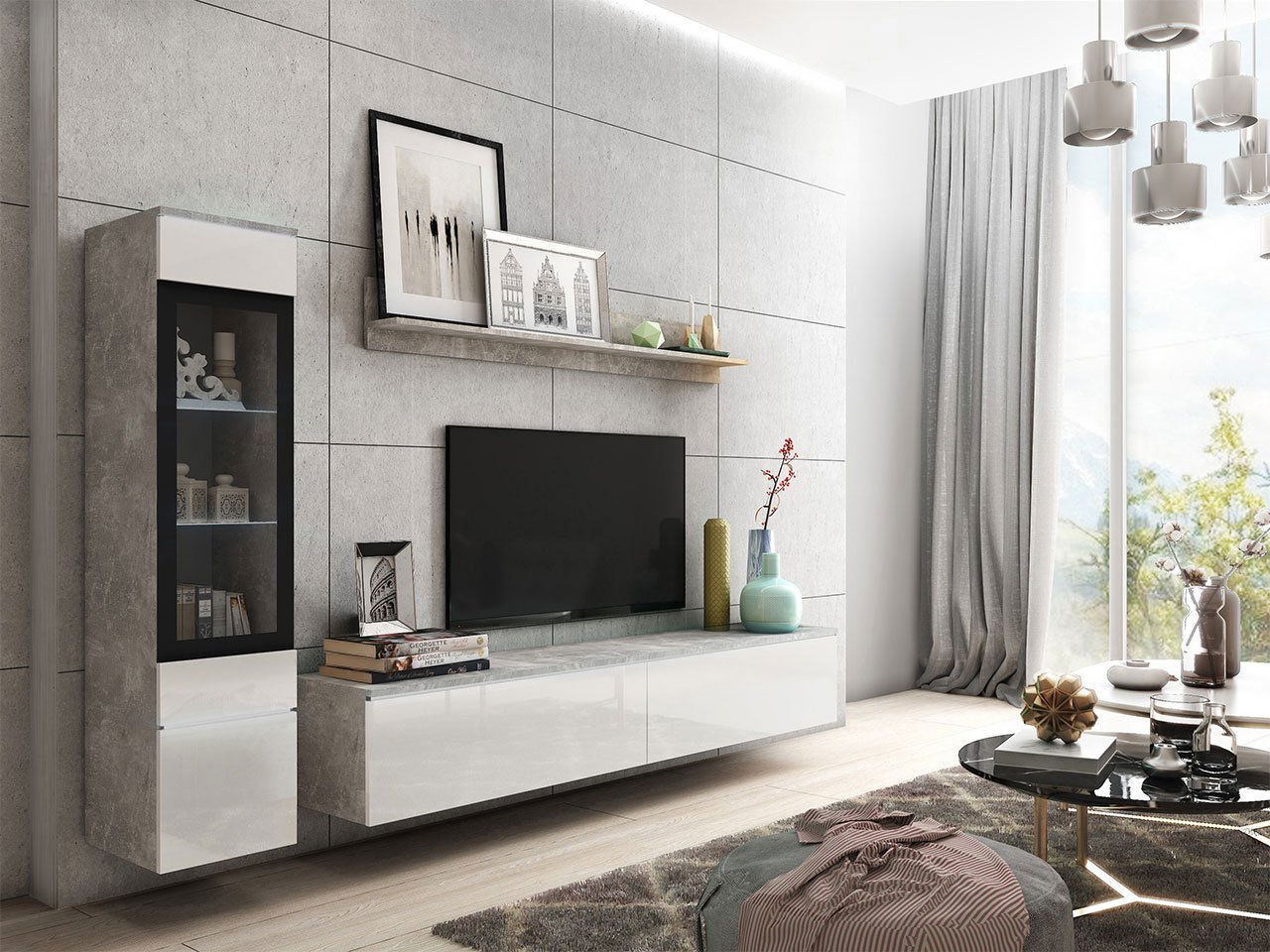 Set za dnevni boravak Selwyn I (beton + bijeli sjaj) (bez rasvjete)