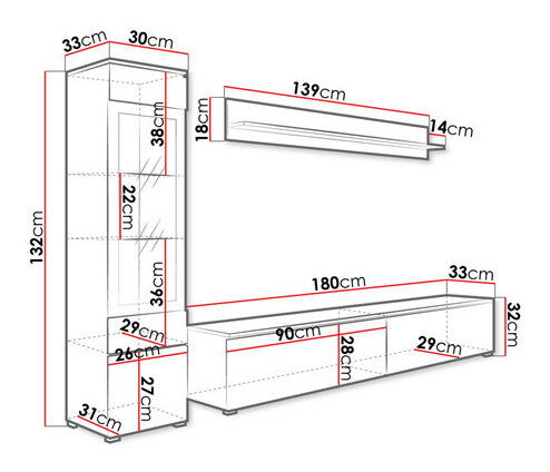 širina: 180 cm, visina: 30 cm, dubina: 33 cm