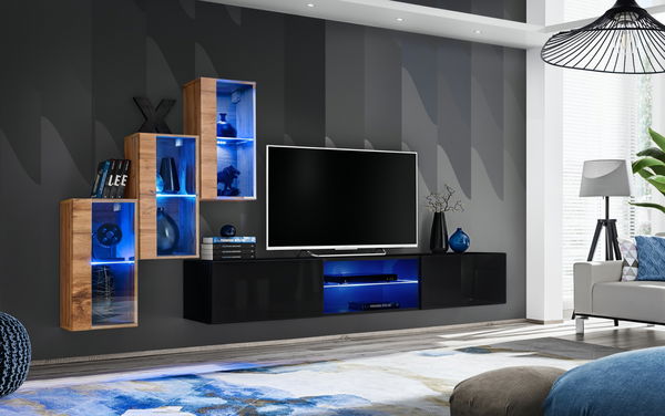 Set za dnevni boravak Shelly WTS SW 22 (hrast wotan + crna mat + crna sjajna)