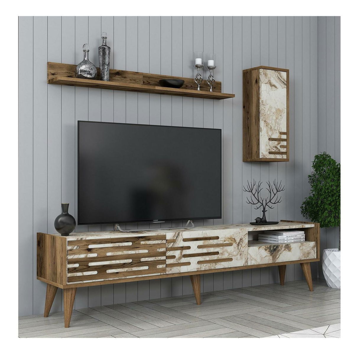 Set za dnevni boravak Tonase (orah + bijela + mramor)