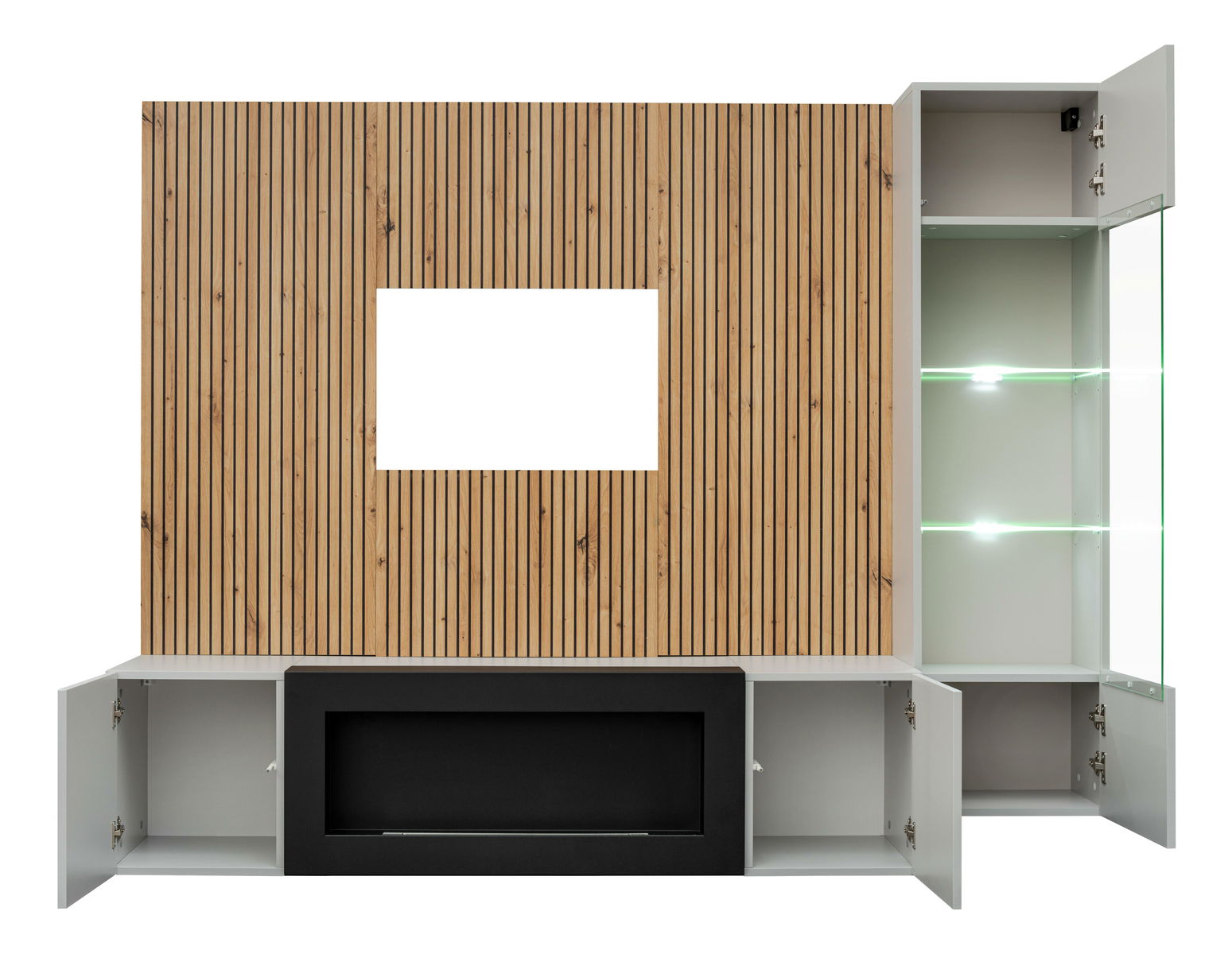 Set za dnevni boravak Xavus L-K (perla grey + hrast artisan)(s rasvjetom) (s bio kaminom)