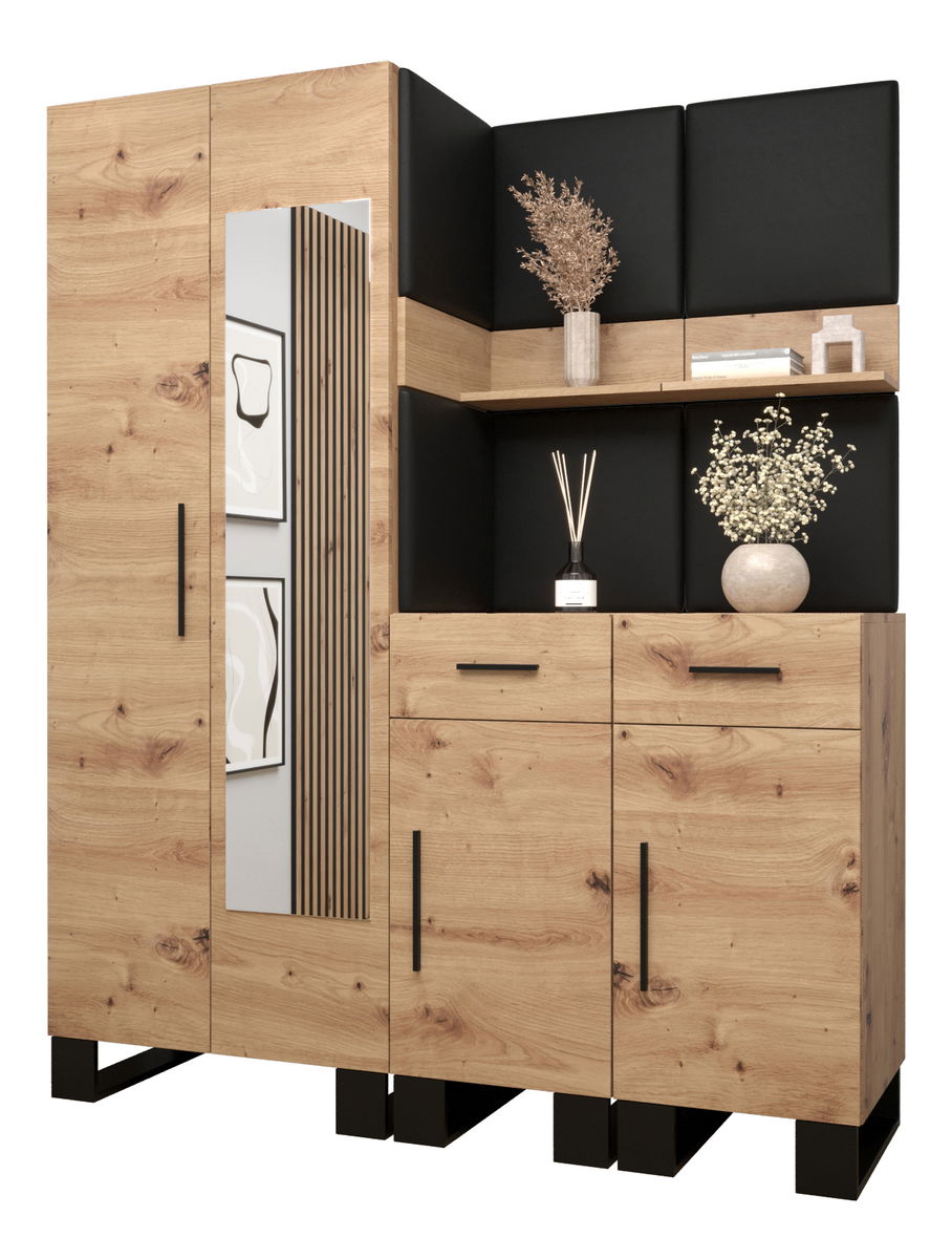 Set za predsoblje Amanda 15 (hrast artisan + crna ekokoža)