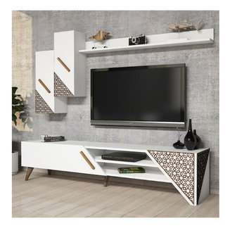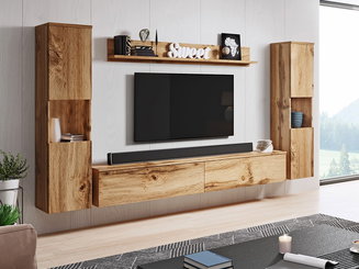 Namještaj za dnevni boravak Badiani XXXI (bijela + bijela sjajna + hrast zlatni)
