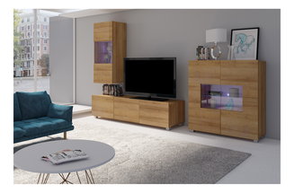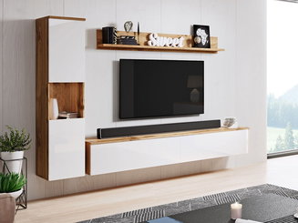 Set za dnevni boravak sastoji se od više samostojećih elemenata ili su pojedinačni komadi namještaja pričvršćeni jedan za drugi. Obično su to TV ormarići, vitrine, police i manji ormarići. Minimalistički stil predstavlja garnitura stolića ispod televizora s višim nogama, jedna polica i najviše dva viseća uska regala ili vitrine. Trebate li više prostora za pohranu, birajte iz ponude luksuznih setova za dnevni boravak od punog drva. Popularna je i kombinacija drvenog korpusa i vrata sa sjajnom završnom obradom.