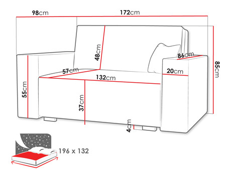 Sofa je idealan izbor za one koji traže udobnost i stil. Sofa na razvlačenje Clivia Vox III savršen je komad za obiteljski odmor. Lijeno poslijepodne, kratki san ili gledanje omiljene serije uvijek su ugodniji na prostranoj trosjed-sofi. Namještaj je pogodan i za svakodnevno spavanje – nakon razvlačenja pruža optimalne uvjete. Također je izvrsno privremeno rješenje za smještaj gostiju. Minimalistički korpus ukrašen je elegantnim šavovima koji naglašavaju profinjeni izgled i ističu boje presvlake. Dimenzije: duljina: 172 cm, širina: 102 cm, visina: 88 cm, ležaj: 196 x 130 cm, spremnik: duljina: 129 cm, širina: 66 cm, visina: 19 cm. Izvedba: okvir od borovine + 15 mm iverica, sjedalo: pjena T25/42 + valovita opruga tip A, naslon: pjena T25/42, sofa na razvlačenje, funkcija spavanja, spremnik, automatski mehanizam, američki tip, drvene noge, tapecirani fiksni naslon, jastuk bez patentnog zatvarača uključen, slobodnostojeća sofa (stražnja strana presvučena tkaninom). Jamstvo: 24 mjeseca. Dodatno: namještaj se isporučuje u cjelini i ne zahtijeva montažu.