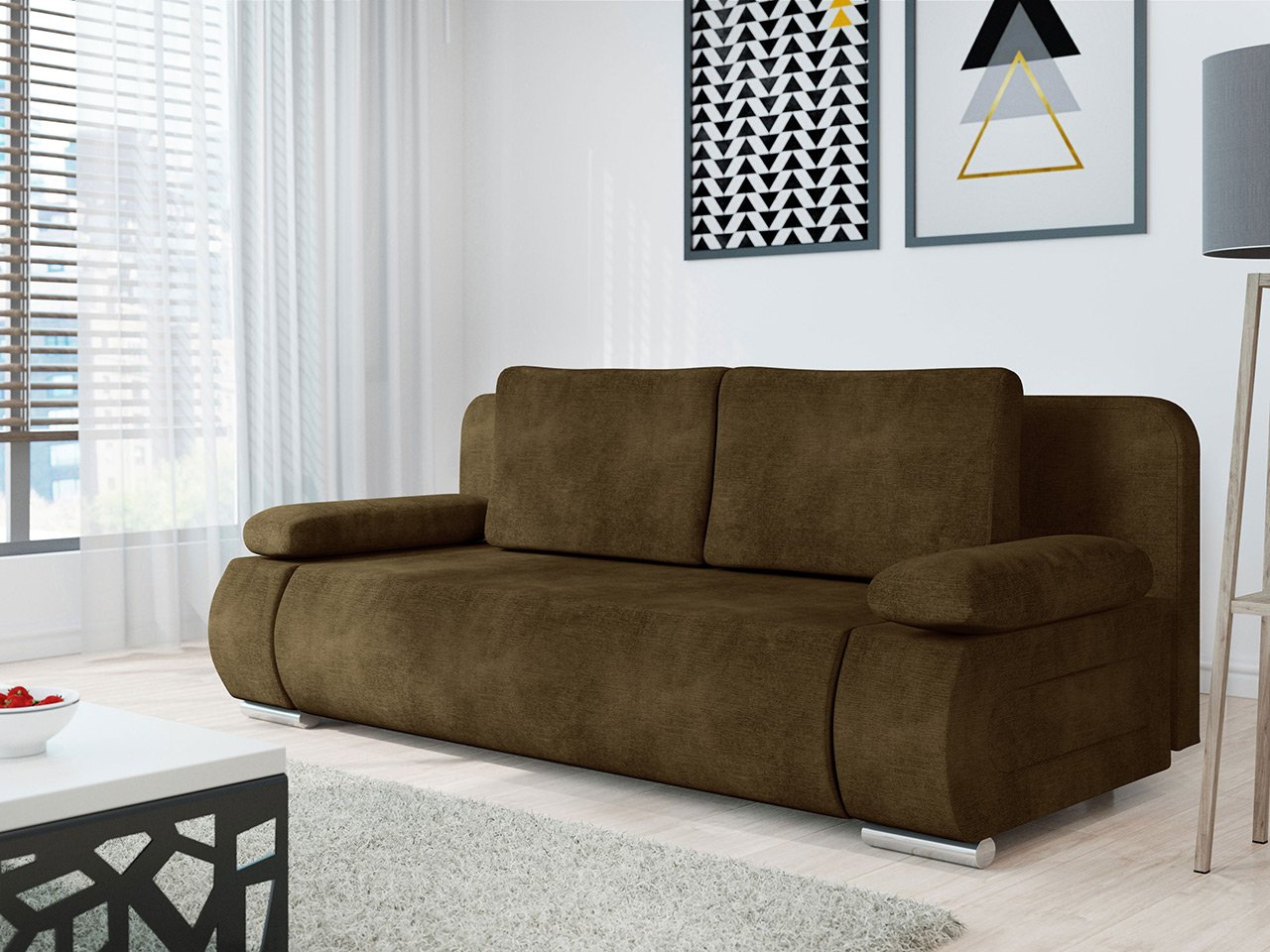 Sofa je idealan izbor za one koji traže udobnost i stil. Danju se može koristiti kao sofa na razvlačenje, a noću za primanje gostiju. Kada je rasklopljena, dostiže površinu za spavanje 143x200 cm, što omogućuje spavanje za 2 osobe. Model Ernas je udobna sofa za spavanje zahvaljujući presvlaci s visokoelastičnom pjenom. Sofa na razvlačenje Ernas je prijedlog za moderan dnevni boravak. To je dvosjed koji će biti izvrsno mjesto za odmor T28, koje daje mekoću. Pomicanim dijelovima namještaja upravljaju jastuci na rubovima sofe. Sofa Ernas ima funkciju razvlačenja i spremnika za posteljinu, što čini njezino korištenje izuzetno jednostavnim. Dimenzije: duljina: 200 cm, širina: 92 cm, visina: 77 cm, površina za spavanje: 200 x 143 cm. Dodatne informacije: drveni okvir + iverica, visoko elastična pjena (poliuretan T2844), jastuci uključeni, sofa se može razvlačiti, sa spremnikom, plastične noge – stražnje: crne, prednje: kromirane. Jamstvo: 24 mjeseca.