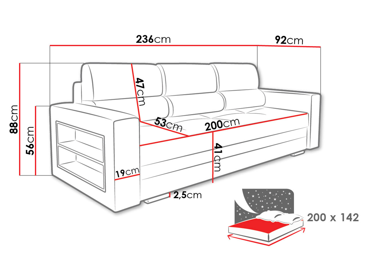 Sofa na razvlačenje Carona (siva + crna) (s prostorom za odlaganje)