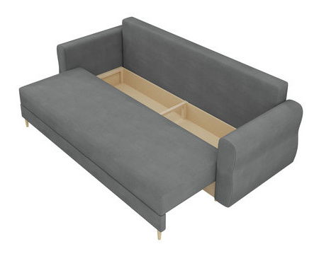 PrikazSofa je idealan izbor za one koji traže udobnost i stil. Sofa Saniolan S 3 savršen je temelj za bilo koji dekor. Mekano tapecirano sjedalo pruža udobnost pri sjedenju. Pufasti jastuci pozivaju vas da se udobno naslonite tijekom gledanja filmova ili pretraživanja omiljenih stranica. Sofa na nogicama djeluje lagano i elegantno. Među našim kupcima ovaj model je visoko cijenjen i zbog funkcionalnosti. Sofu je moguće razvući i time dobiti prostrani ležaj za svakodnevno spavanje. Problem odlaganja rješava velik spremnik. Dimenzije: duljina: 231 cm, širina: 77 cm, visina: 85 cm, ležaj: 195x131 cm, dimenzije spremnika: duljina: 195 cm, širina: 58 cm, visina: 24 cm. Izvedba: okvir: drvo + 16 mm iverica, sjedalo: 8 cm pjena T30 + valovita opruga „tip A“, naslon: pjena T30, debljina 8 cm, sofa je na razvlačenje, ima funkciju spavanja, spremnik, noge: drvo, naslon u obliku pomičnih jastuka ispunjenih mljevenom pjenom, jastuci uključeni – na patentni zatvarač, sofa je slobodnostojeća (stražnja strana presvučena tkaninom). Jamstvo: 24 mjeseca.