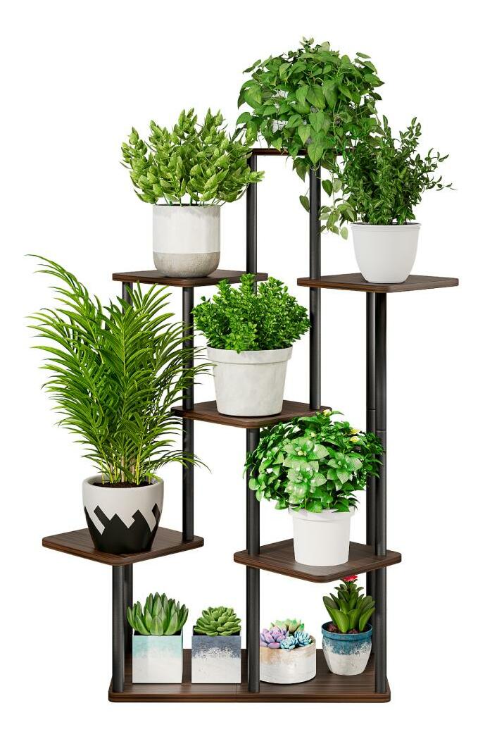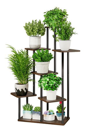 Stalak za cvijeće Anita (tamno drvo + crna)