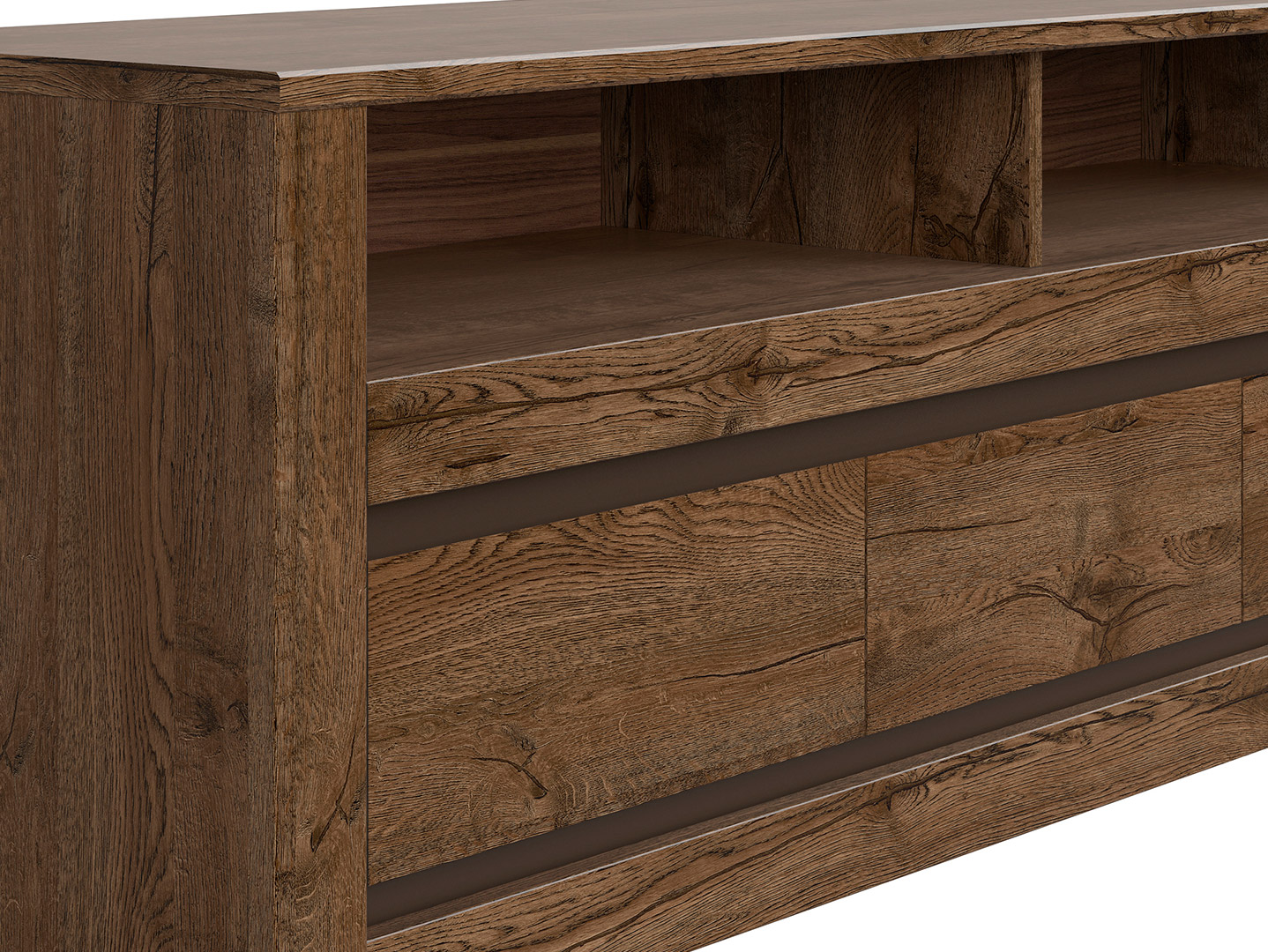 TV ormarić s 2 otvorene police i 3 ladice. Jednostavni oblici, zanimljiva boja i detalji odlikuju kolekciju Kada.