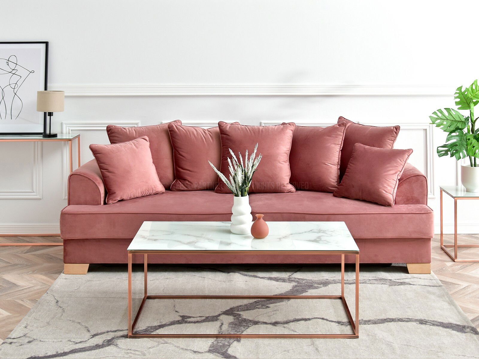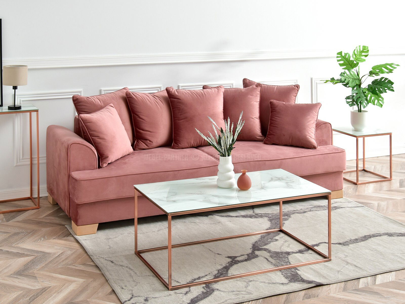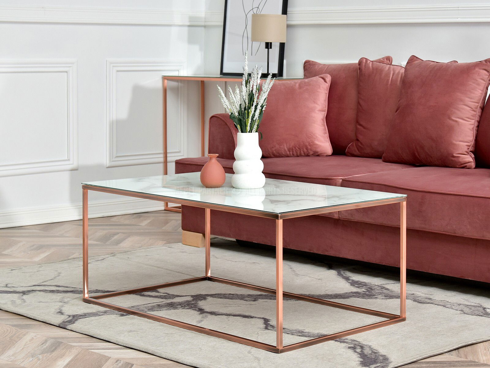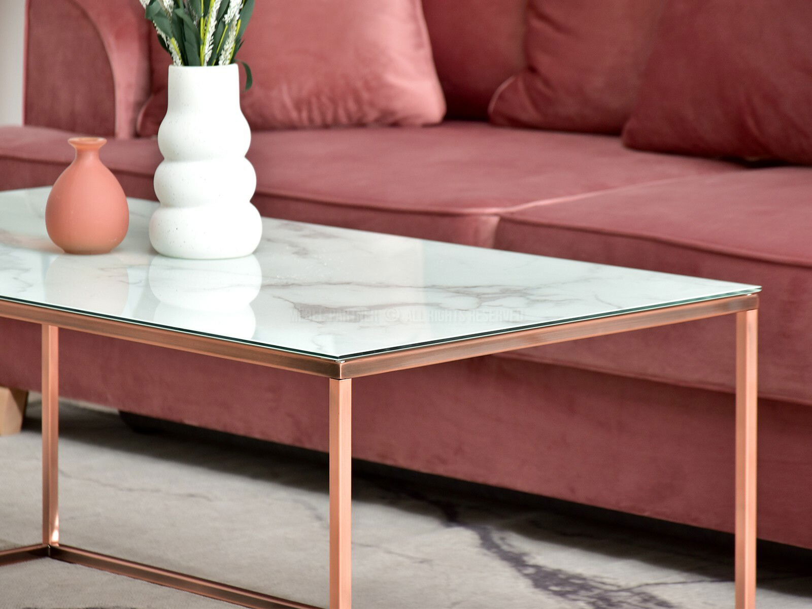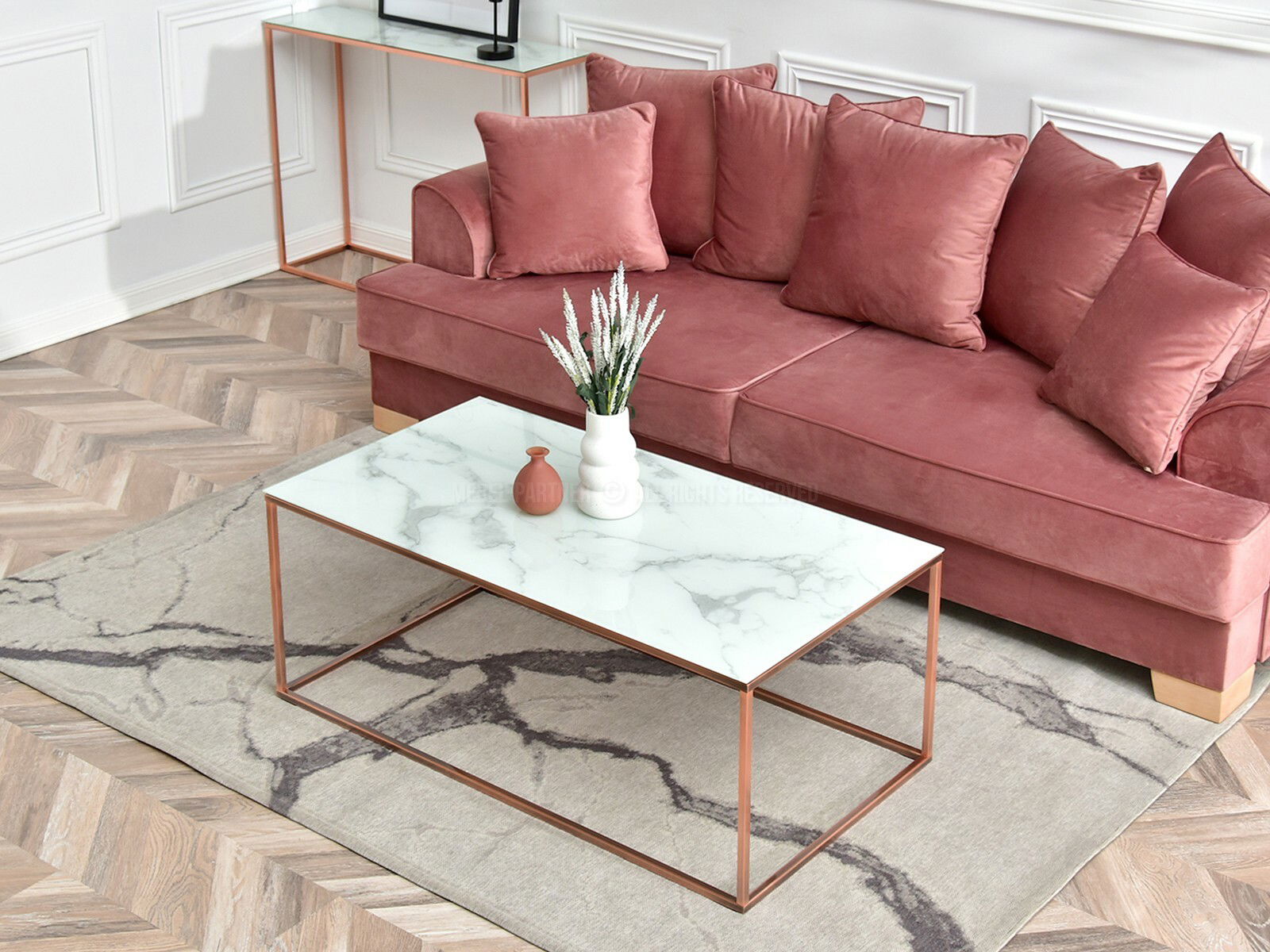 Stolić za kavu Bella Xl (bijeli mramor + bakar)