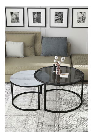 Stolić za kavu Borra (dimljeno staklo + mramor + bijela) *outlet moguća oštećenja