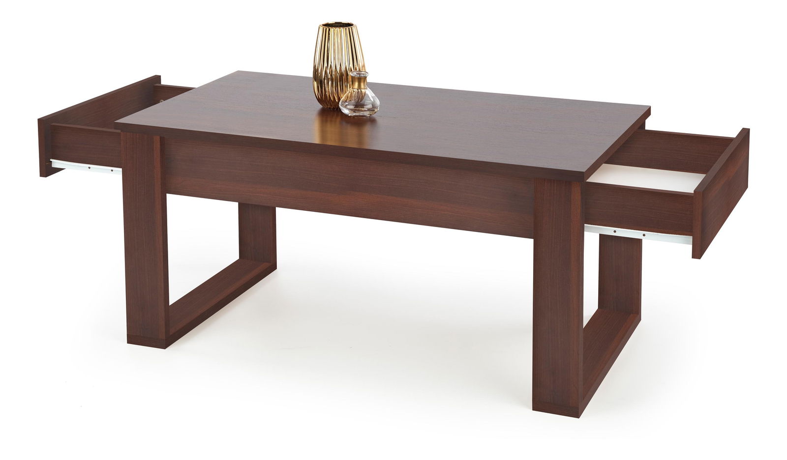 Stolić za kavu Carne u tamnom orahu izrađen je od laminirane iverice, što osigurava njegovu otpornost i trajnost. S visinom od 52 cm i dubinom od 60 cm nudi dovoljno mjesta za organizaciju raznih predmeta na stolu, uključujući piće, knjige i dekoracije. Stolić ima elegantan moderan izgled koji se uklapa u svaki interijer. Njegova tamna nijansa oraha prostoru daje čar i stil. Stolić Carne prikladan je kako za dnevni boravak, tako i za radnu sobu ili ured. Ovaj stolić je izvrstan izbor za one koji traže praktičan i ujedno stilski komad namještaja koji će zadovoljiti njihove visoke zahtjeve za kvalitetom i dizajnom.
