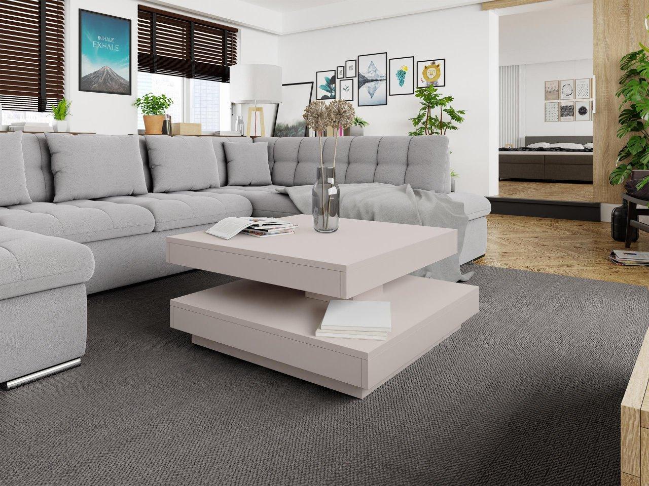 Stolić za kavu je idealan izbor za one koji traže udobnost i stil. Tražite moderni stolić za kavu koji će biti glavni ukras vaše dnevne sobe? Naš prijedlog je model Druzjan! Stolić za kavu Druzjan opremljen je s dvije korisne ploče. Donja ploča je stabilna baza namještaja, dok se raspored gornjeg dijela može prilagoditi vašim trenutnim potrebama. Između ploča korišten je poseban mehanizam koji omogućuje rotaciju gornje ploče stola za 360 stupnjeva. Pokretna ploča nudi puno pogodnosti korisnicima i zanimljiv dekorativni naglasak u dnevnoj sobi. Stolić za kavu izrađen je od čvrste iverice, a njegovi rubovi ojačani su ABS furnirom. Dimenzije: širina: 70 cm, visina: 34 cm, dubina: 70 cm. Izvedba: konstrukcija stolića: iverica debljine 16 mm, ABS rub, noge: klizači, dostupna su dva gornja dijela (donji i gornji), gornja ploča stola može se rotirati za 360 ° zahvaljujući posebnom mehanizmu. Mogućnost kupnje proizvoda iz ponude: tapecirani krevet Kevin, moderno podno svjetlo Across I 6927, kutna garnitura Tony. Jamstvo: 24 mjeseca.