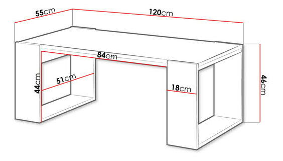 širina: 120 cm, visina: 46 cm, dubina: 55 cm