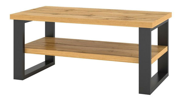 Stolić za kavu u stilu dvije police povezane metalnim nogama. Proizvod iz serije Harley stoji na metalnim nogama, što namještaju daje grub izgled i ostavlja dojam čvrstine.
