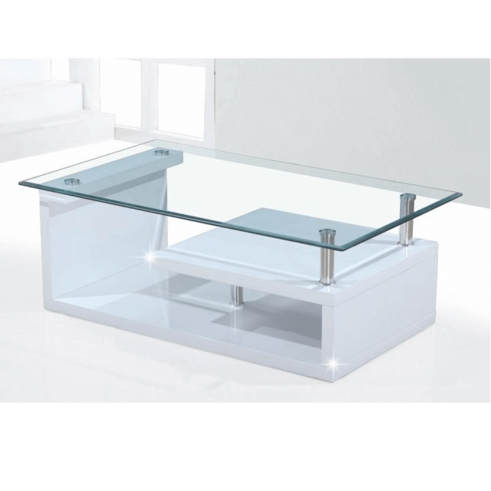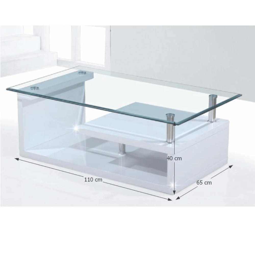 Stolić za kavu Juliana izrađen je od kvalitetne MDF ploče bijele boje s vrlo visokim sjajem HG. Kaljeno staklo ima debljinu 8 mm.