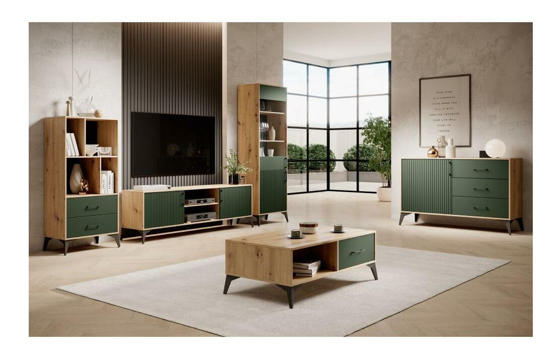 Hrast artisan + tamnozelena + crna