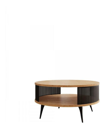 Stolić za kavu Mozimo idealan je za one koji traže udobnost i stil. Tražite funkcionalan komad namještaja za dnevni boravak koji će također biti netradicionalan ukras? Upoznajte okrugli stolić za kavu Mozimo! Brojne boje omogućuju usklađivanje s postojećim interijerom. Zašto je poseban? Njegova konstrukcija sadrži ukrasni umetnut dio koji povezuje gornju i donju ploču te pruža dodatni prostor za pohranu u obliku police. Zahvaljujući tome, vaš prostor za sjedenje bit će organiziran i uredan. Stolić za kavu na nogicama postat će pravi ukras vašeg dnevnog boravka! Dimenzije: širina: 75 cm, visina: 44 cm, dubina: 75 cm. Izvedba: laminirana iverica debljine 18 mm, ABS rubovi debljine 2 mm, noge od čelika, praškasto obojene crnom bojom, srednji dio izrađen od čelika s praškastim premazom. Jamstvo: 24 mjeseca.