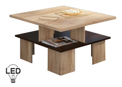 Moderan stolić za kavu s mogućnošću dodatne kupovine LED rasvjete. Dolazi u kombinaciji boja sonoma svijetla + sonoma tamna.