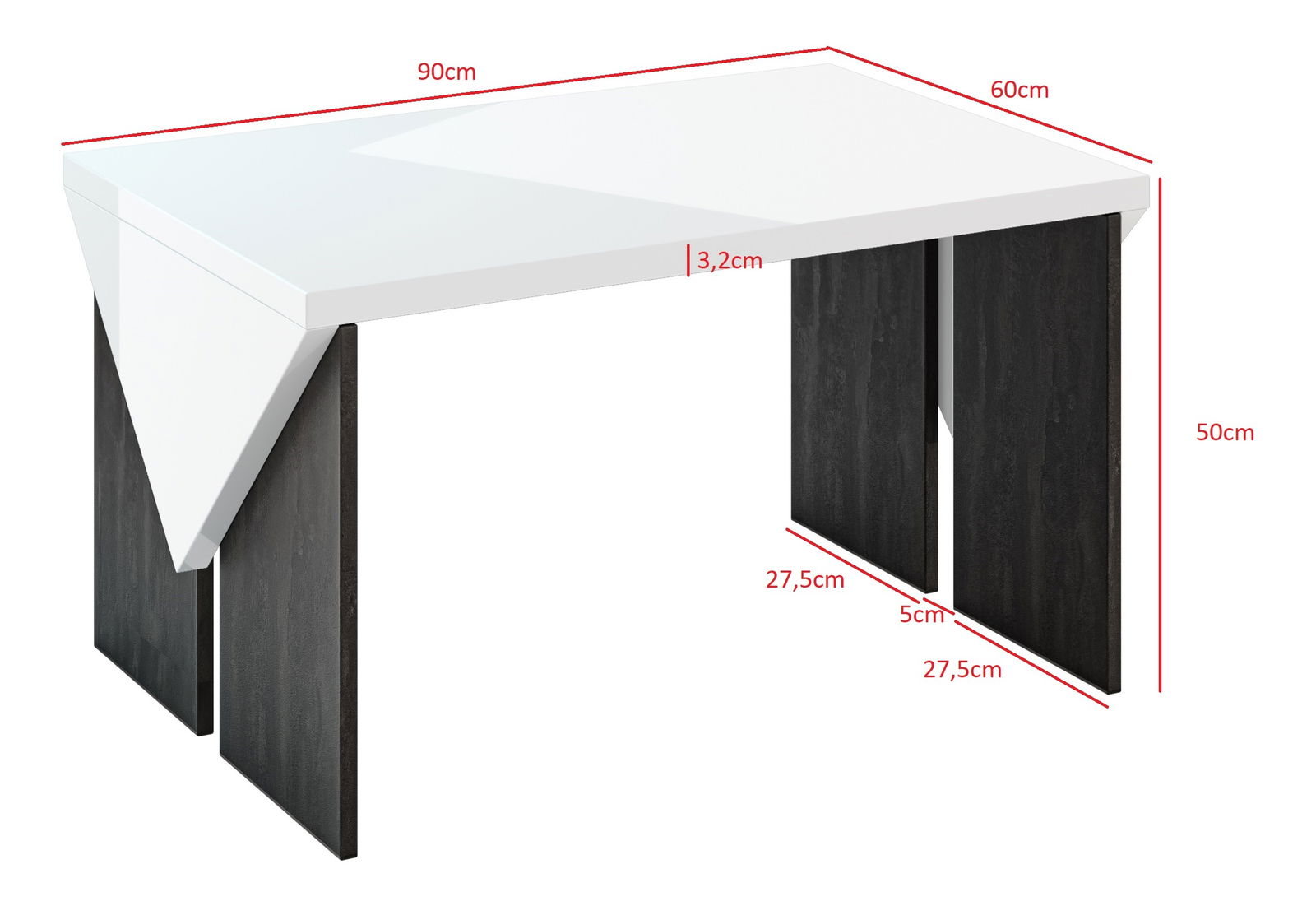 Stolić za kavu Tarni (bijeli sjaj + tamnosiva)