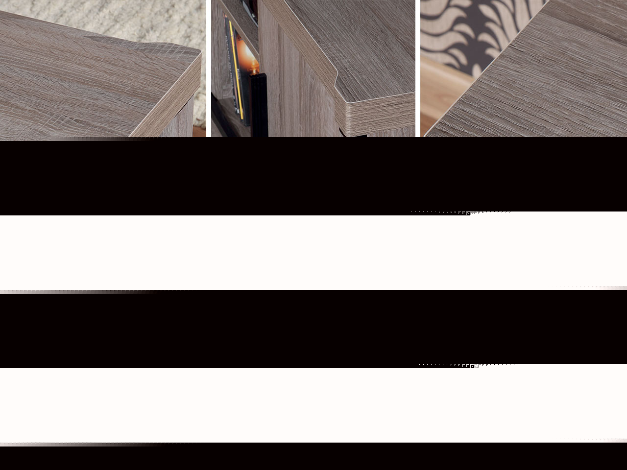 laminirana ploča debljine 48 mm, stranice izrađene od 16 mm laminirane ploče, stranice ukrašene 80 mm x 22 mm MDF trakom koja je folirana i brušena, ABS rubovi: vrhovi 0,8 mm, stranice 0,5 mm