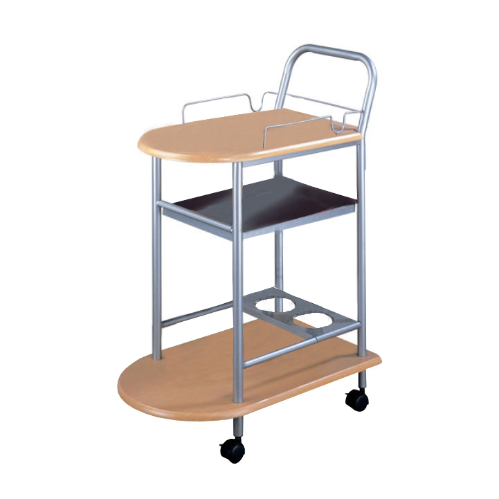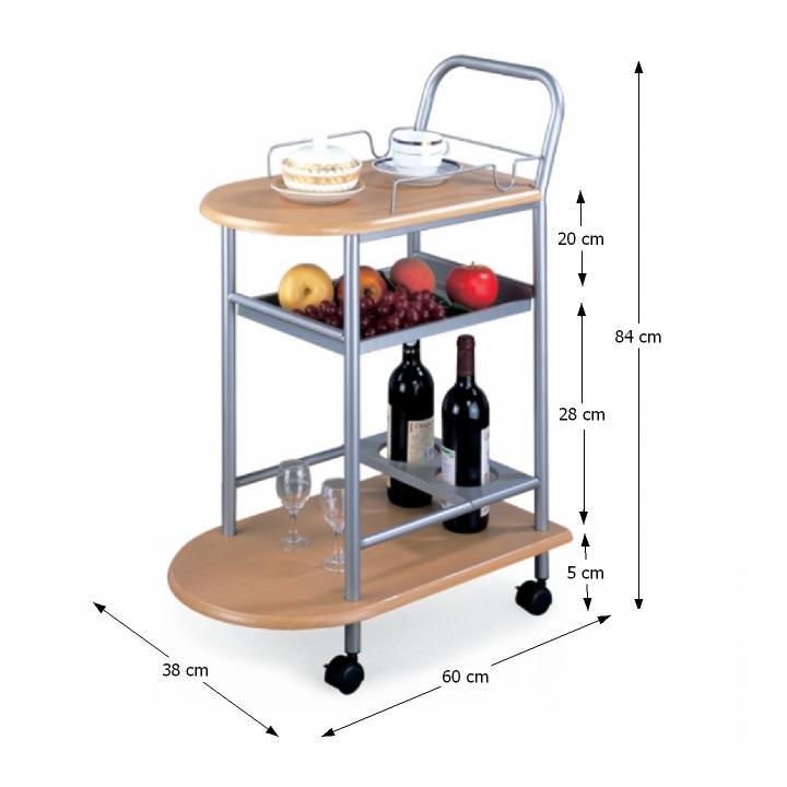 Praktičan stolić za posluživanje sa srebrnom konstrukcijom od metala koja je dopunjena s 2 MDF ploče. 2 od 4 kotačića imaju kočnice.