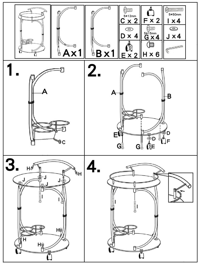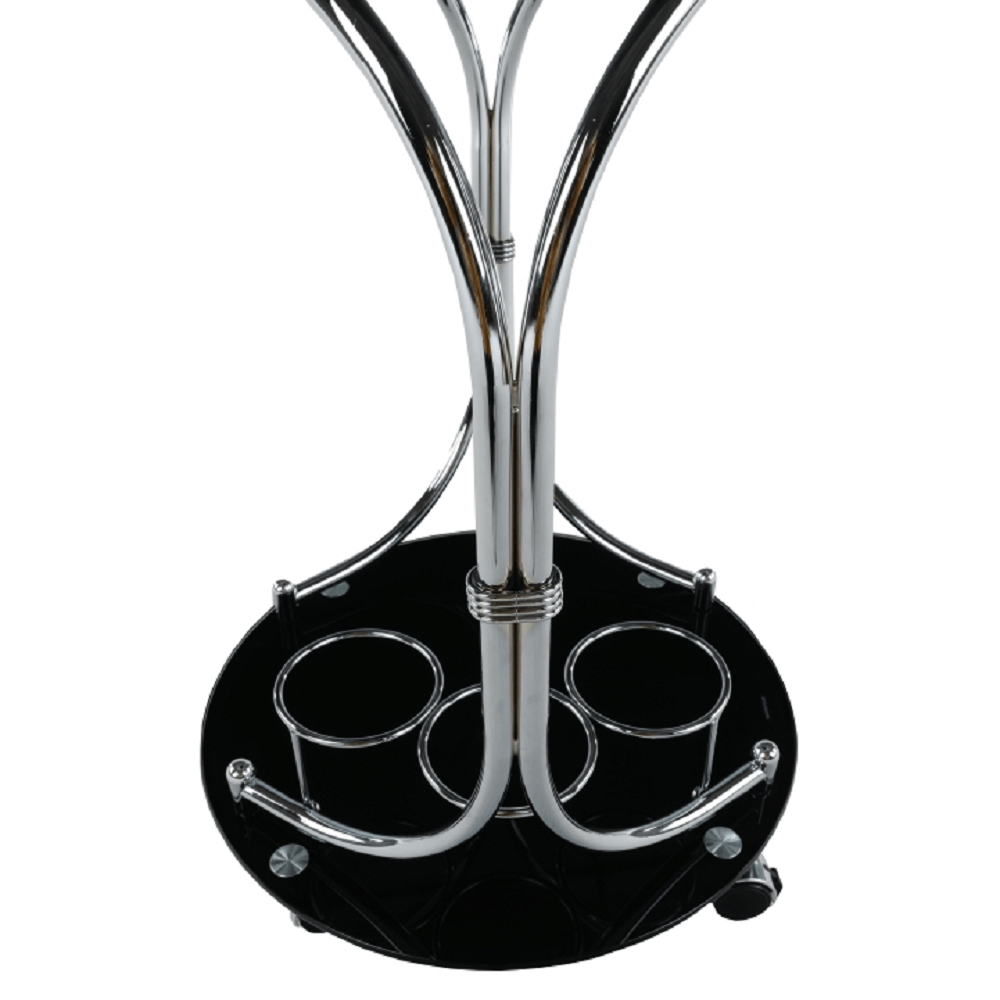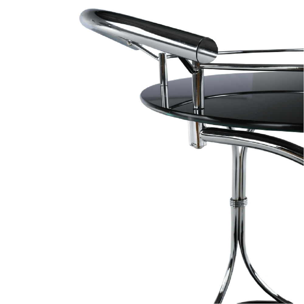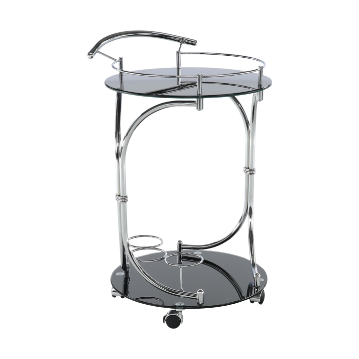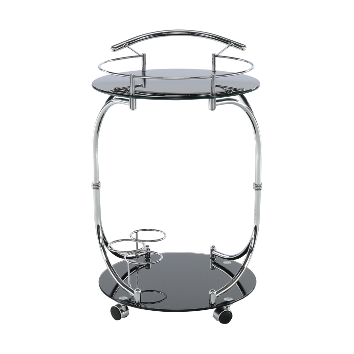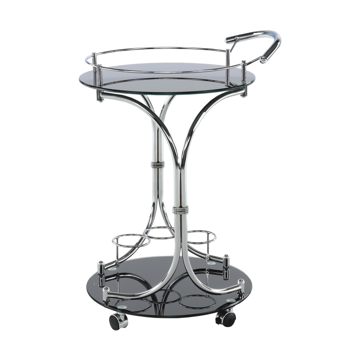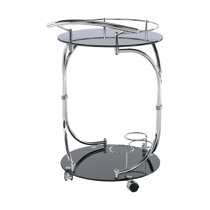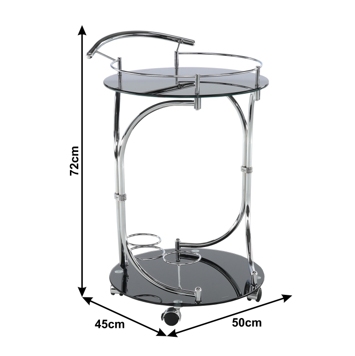 Praktičan pomoćni stolić za posluživanje. Dvije okrugle plohe od kaljenog stakla imaju nosivost do 3,5 kg.