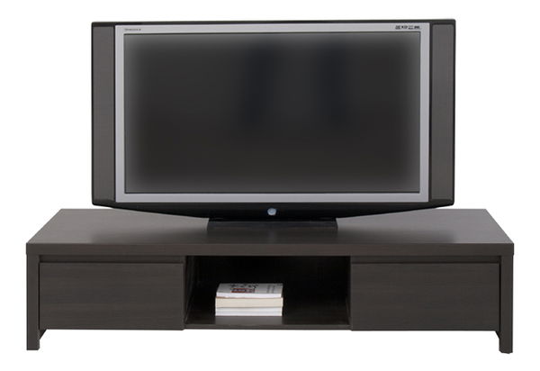TV stolić minimalističkog dizajna. Slijeva i zdesna se nalazi ladica, a u srednjem dijelu je otvorena polica.