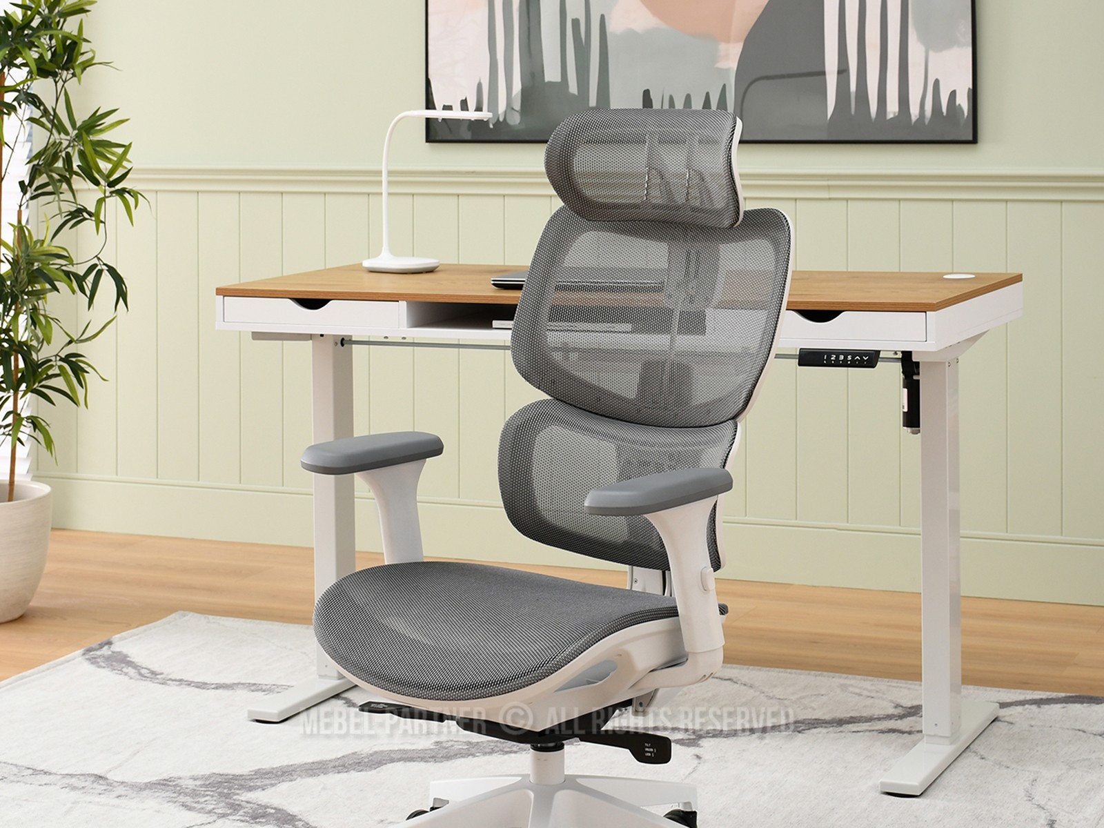 funkcija ljuljanja, okretno sjedalo, nasloni za ruke da, središnja noga s kotačima, podesiva visina, naslon za glavu da, podesivi nasloni za ruke da