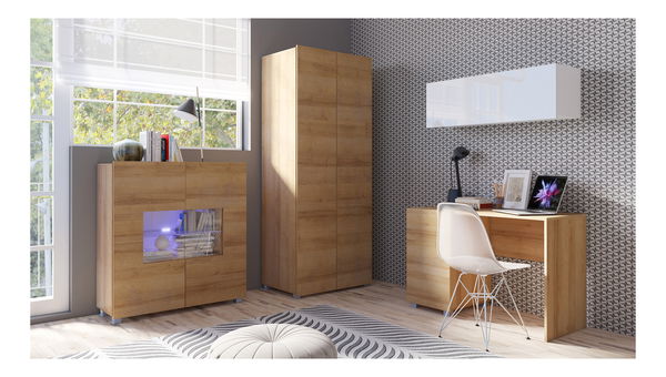 Studentska soba Calabria C14 (bijela + hrast zlatni) (bez rasvjete)