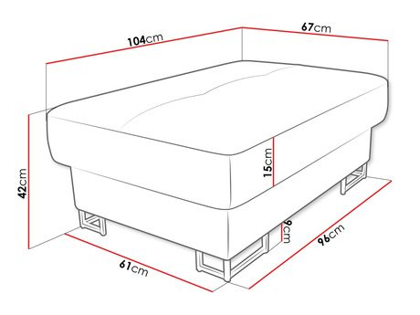 Tabure je idealan izbor za one koji traže udobnost i stil. Dnevni boravak kao udoban prostor za odmor cijele obitelji trebao bi biti opremljen namještajem koji jamči udobnost. Prednost taburea je dostupnost visokokvalitetne tkanine Magic Velvet. Zahvaljujući svojim svojstvima olakšava čišćenje taburea i također je otporna na ogrebotine od kućnih ljubimaca. Dimenzije: dužina: 106 cm, širina: 67 cm, visina: 42 cm. Izvedba: drveni okvir, filc, 9 cm debela T-2844 pjena, valovnica, bez prostora za pohranu, metalne noge u krom boji. Jamstvo: 24 mjeseca.