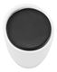 Tabure s okruglom bazom s prostorom za odlaganje i tapeciranim sjedištem. Materijal je bijela plastika, a presvlaka je tekstilna koža PU crne boje. Nosivost je 100 kg.