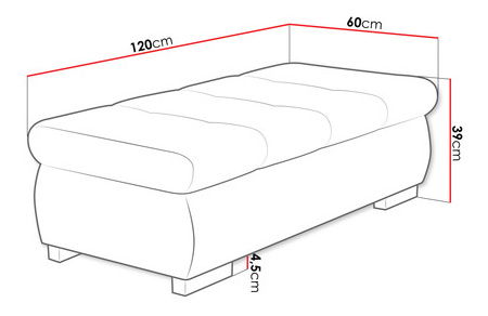 Tabure je idealan izbor za one koji traže udobnost i stil. Tabure Herkules veliki komad je namještaja koji svojom bojom možete uskladiti sa kutnom garniturom Herkules koju nudimo u našem web shopu. Veliki tabure Herkules možete koristiti kao dodatno mjesto za sjedenje, za podizanje nogu ili kao stolić za kavu. Savršeno pristaje posvuda kao dodatak. Tabure je izrađen od visokokvalitetnih materijala, što jamči dugogodišnje korištenje. Laka, kompaktna konstrukcija omogućuje premještanje na bilo koje mjesto vašeg interijera. Dimenzije: dužina: 120 cm, širina: 60 cm, visina: 39 cm. Dostupne presvlake: odaberite između dostupnih ovdje. Izvedba: drveni okvir + iverica, poliuretanska pjena T 2844 + valovita opruga, tabure bez prostora za pohranu, kvadratne noge. Tabure Herkules idealno pristaje uz: kutna garnitura Herkules, kutna garnitura Herkules mini, kutna garnitura Kanton mini. Jamstvo: 24 mjeseca. Informacije: dostava ne uključuje unos. Vozač dostavlja vašu narudžbu do kolnog prilaza. Parametri proizvoda poput dimenzija ili boja se ne mijenjaju. Proizvod je dostupan samo u konfiguracijama navedenim u ponudi.