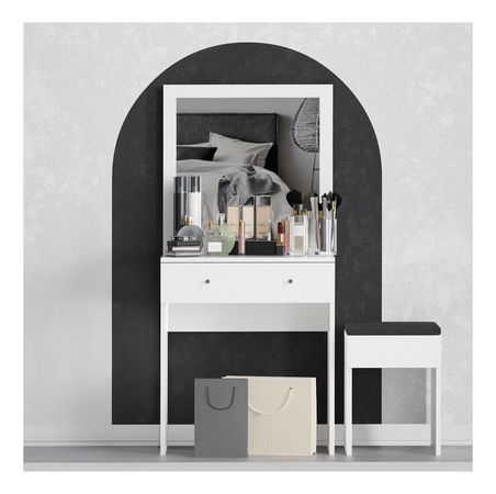 debljina: 18 mm, veličina kozmetičkog stola: širina: 65 cm, visina: 139 cm, dubina: 35 cm, veličina stolice: širina: 39 cm, visina: 45 cm, dubina: 35 cm