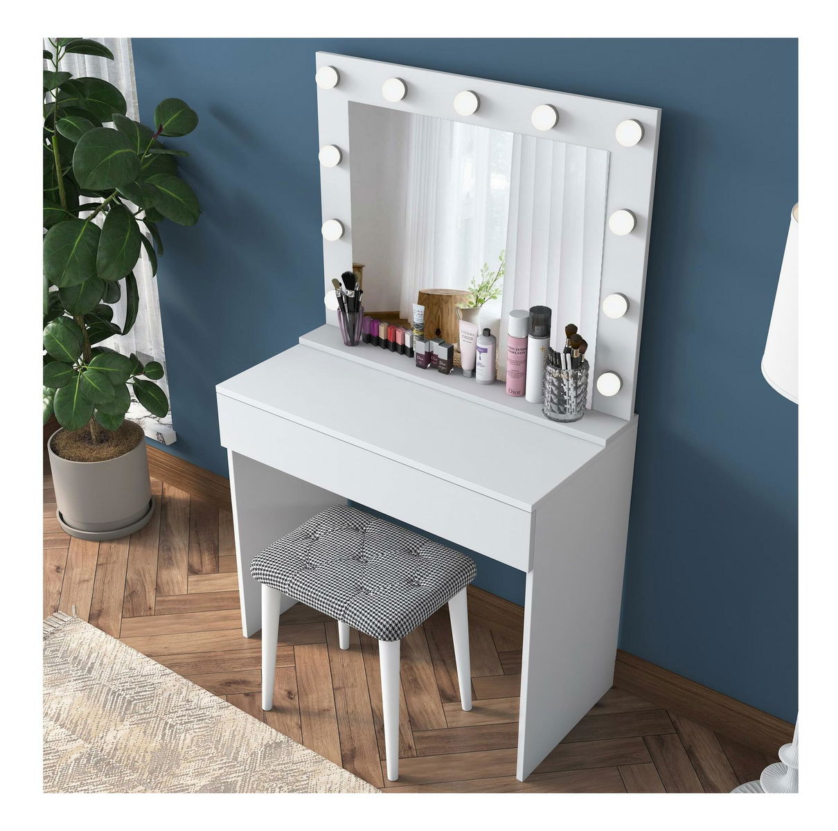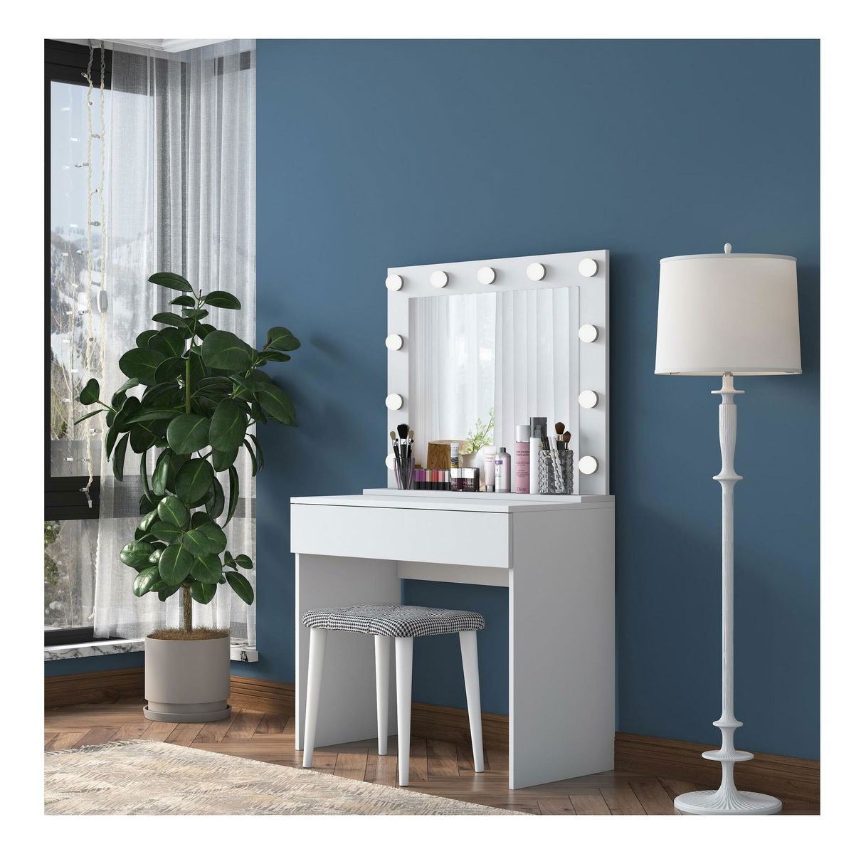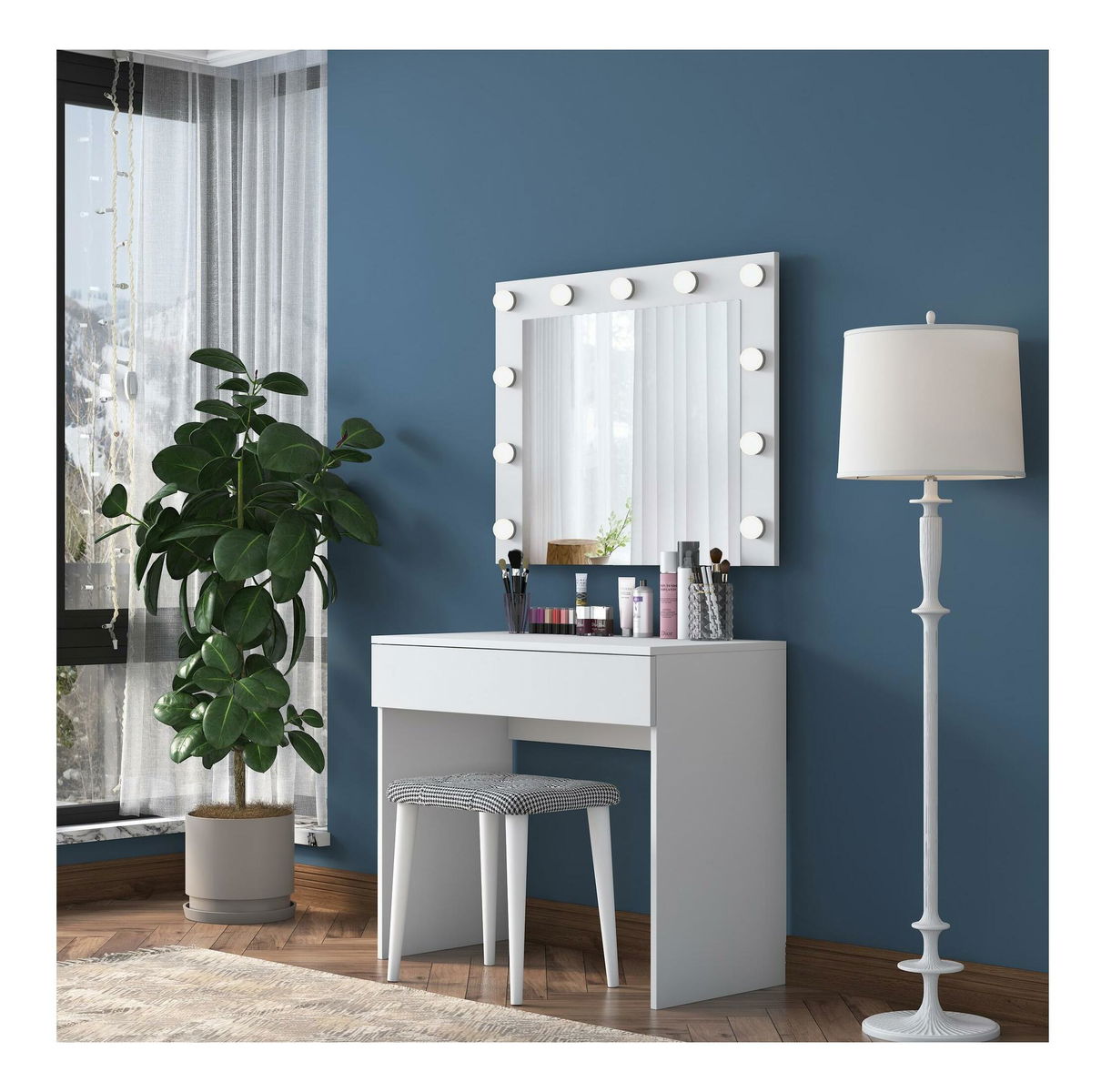 Toaletni stolić s tabureom Blake 21 (s ogledalom) (s LED rasvjetom) (bijela)