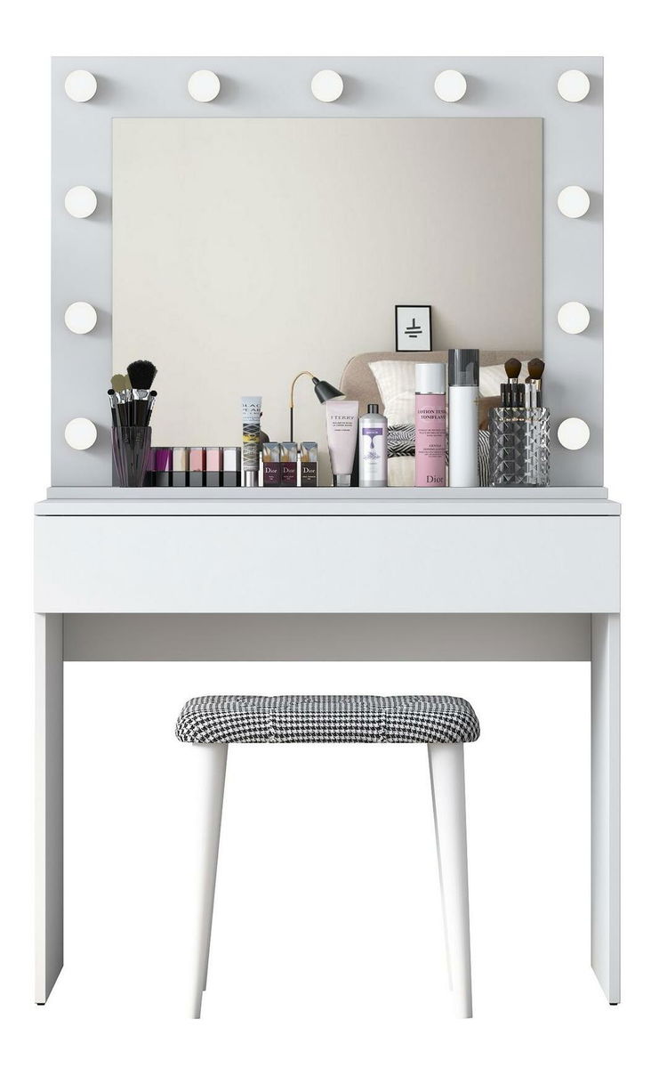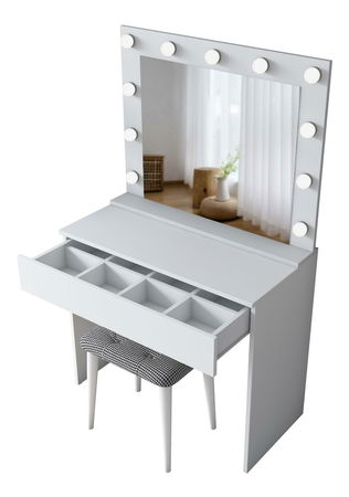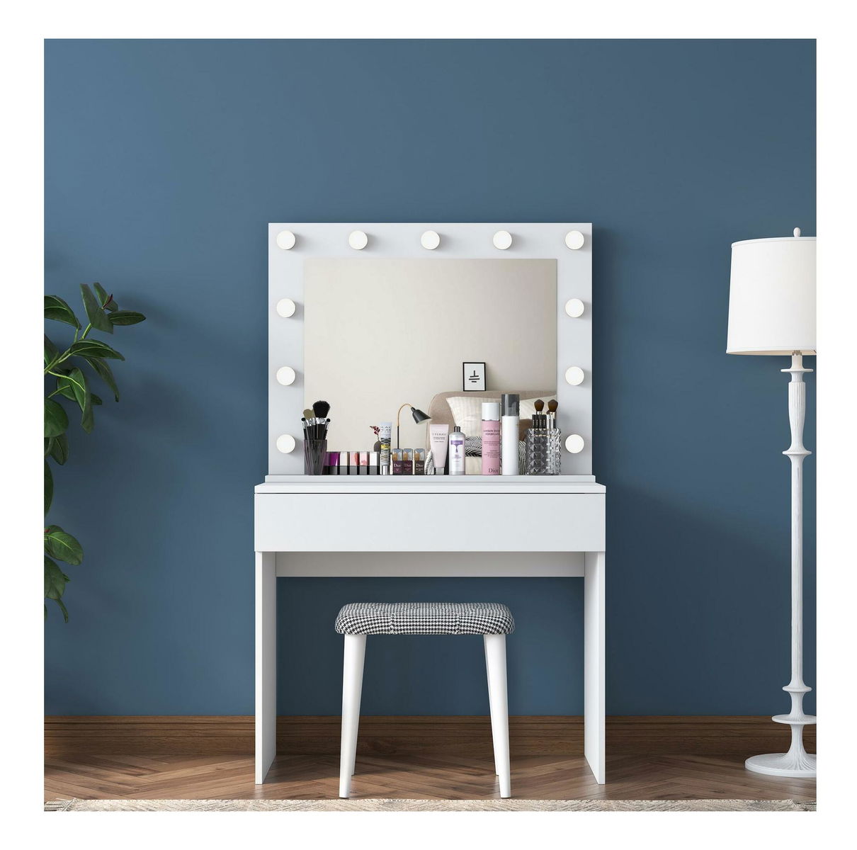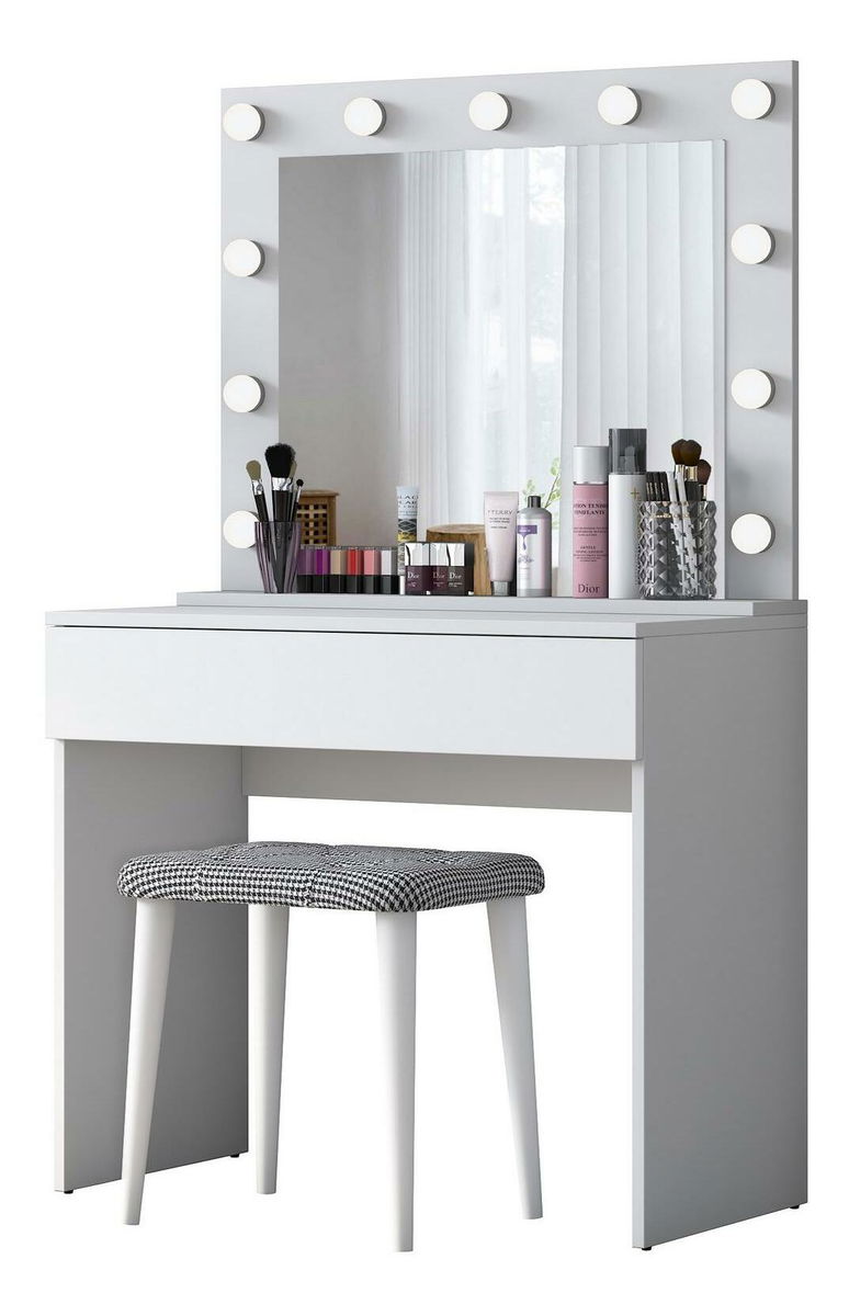 Toaletni stolić s tabureom Blake 21 (s ogledalom) (s LED rasvjetom) (bijela)