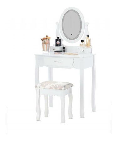 Toaletni stolić s tabureom Sophiina (s LED rasvjetom) (bijela)