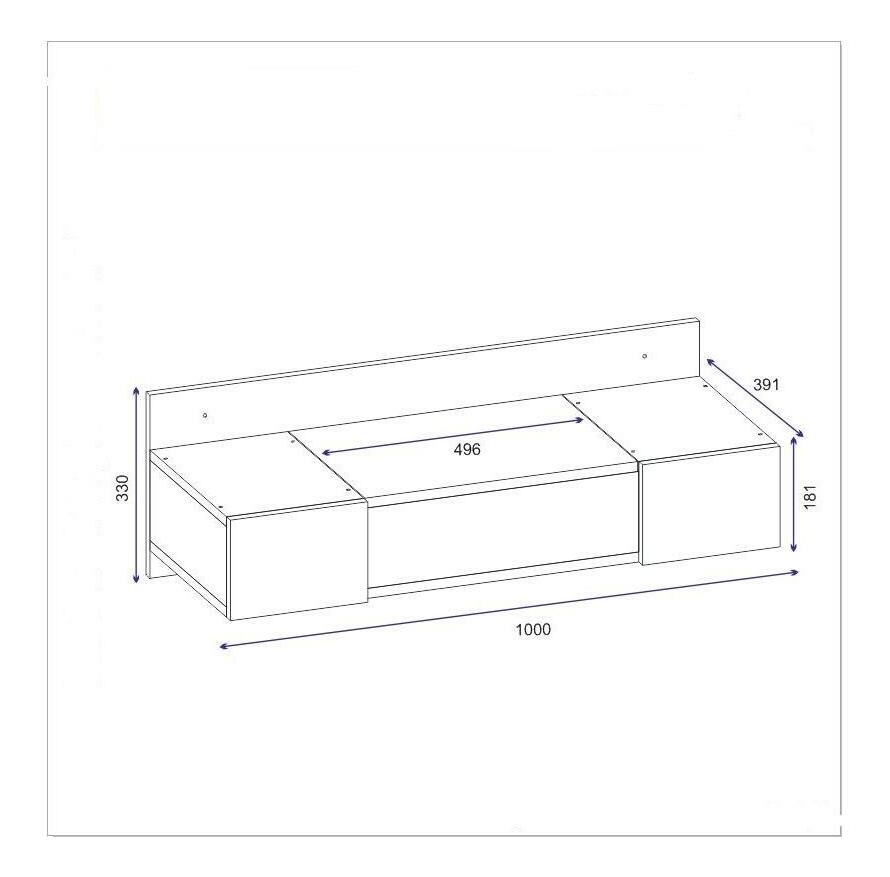 debljina: 18 mm, veličina kozmetičkog stola: širina: 100 cm, visina: 33 cm, dubina: 39,1 cm, veličina ogledala: širina: 49,6 cm