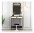 Toaletni stolić uključuje i stolicu. Na vama je koji vam tip odgovara - je li vam dovoljan tabure, dizajnerski tapecirana fotelja ili stolica s naslonom. U ponudi imamo i gotove setove uključujući i stolicu. Bez sumnje, najvažniji dio toaletnog stolića je veliko ogledalo. Stol ne bi bio potpun bez njega. Možete odabrati različite veličine iz širokog izbora. Veća ogledala su praktičnija jer u njima možete provjeriti i svoj kompletan outfit. Preporučujemo da ga nadopunite manjim ogledalima sa strane. S tim je usko povezana i rasvjeta. Postoji razlika između nanošenja šminke u prigušenoj kupaonskoj rasvjeti i prirodnog svjetla gdje možete vidjeti sve nesavršenosti. Ako ste u prilici, postavite stol blizu prozora i dodajte stolnu lampu. Budući da bi to trebao biti mali komadić raja, počastite se svježim cvijećem, fotografijom ili drugim ukrasom na stolu koji će vam uvijek izmamiti osmijeh na licu.Toaletni stolići picture 0