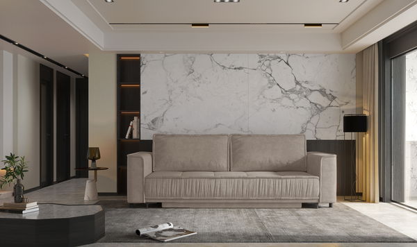 Tkanina Terra je izdržljiva tapecirana tkanina, obično od poliestera, s nježno strukturiranom ili baršunastom površinom. Čvrsta je, postojana u boji, ugodna na dodir i pogodna za svakodnevnu upotrebu, uključujući kućanstva s djecom ili kućnim ljubimcima. Čisti se jednostavno – dovoljna je vlažna krpa ili blagi deterdžent za tapecirani namještaj, bez potrebe za kemijskim čišćenjem.