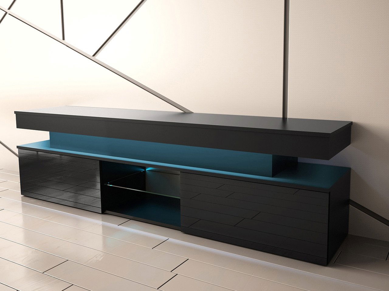 TV ormarić Lesteralo 2D 190 (crna + crni sjaj) (s plavom LED rasvjetom)