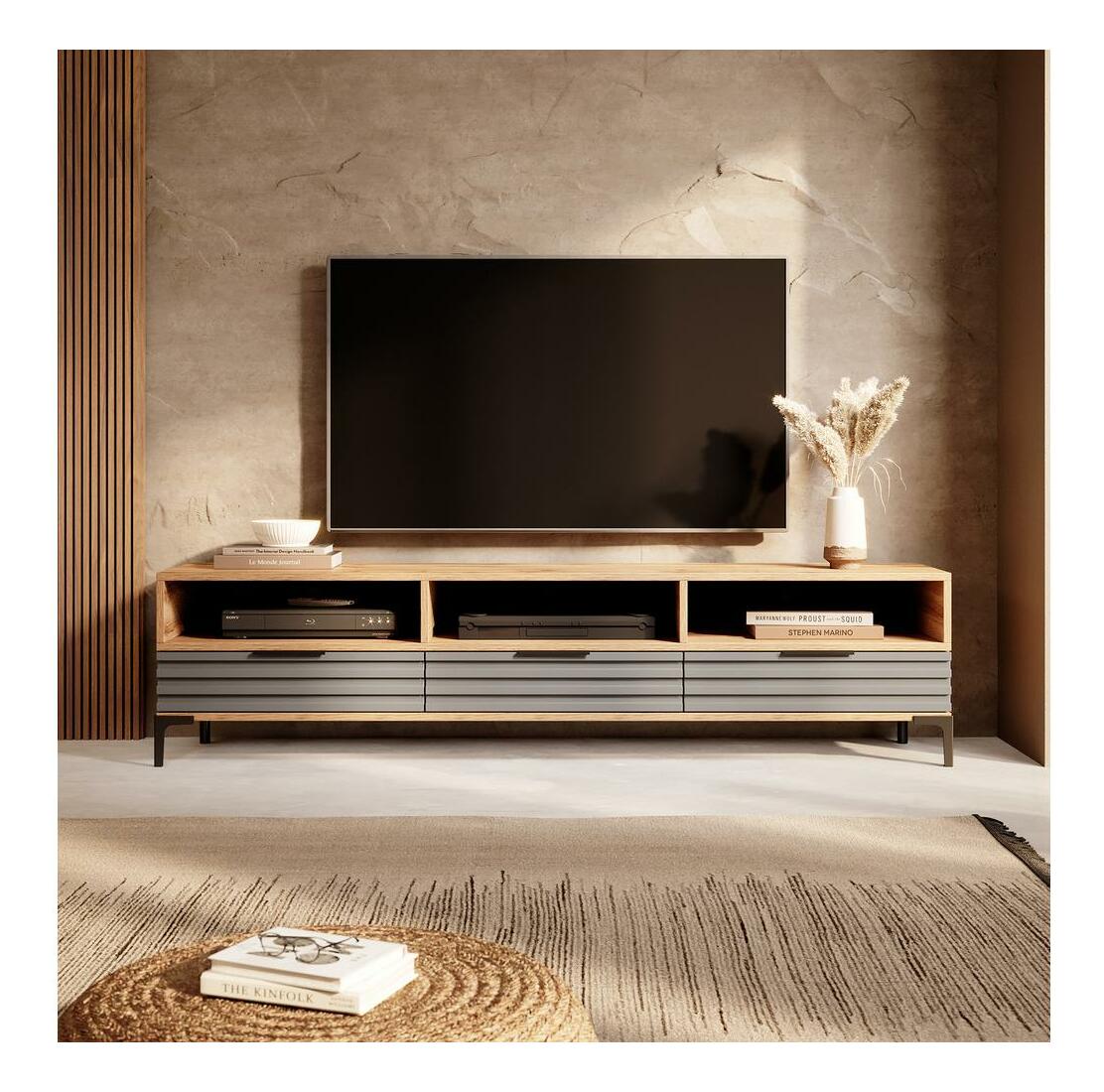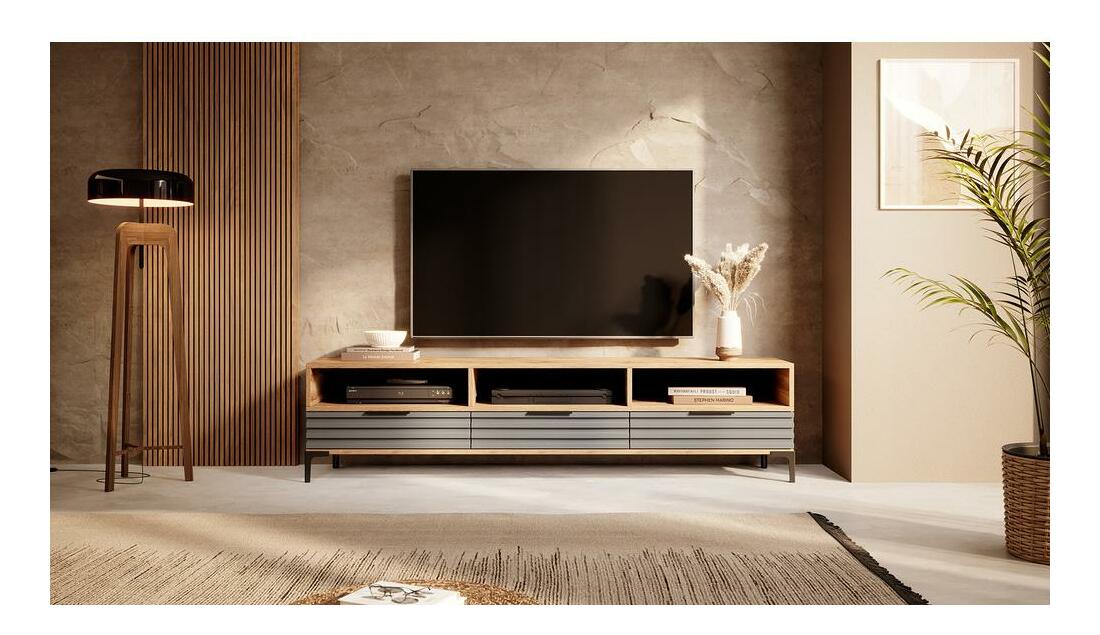 TV ormarić/stolić Ricko 3D (hrast prirodni + siva)