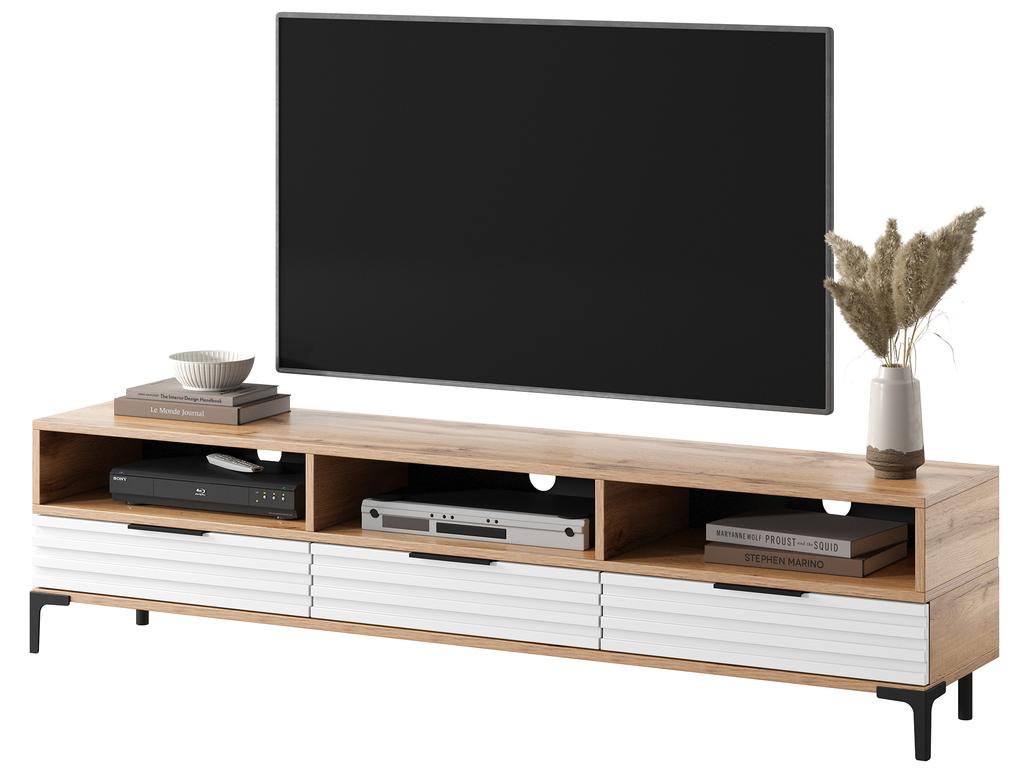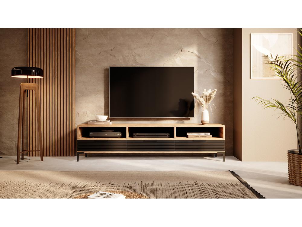 TV ormarić/stolić Ricko 3D (s rasvjetom) (hrast prirodni + crna)